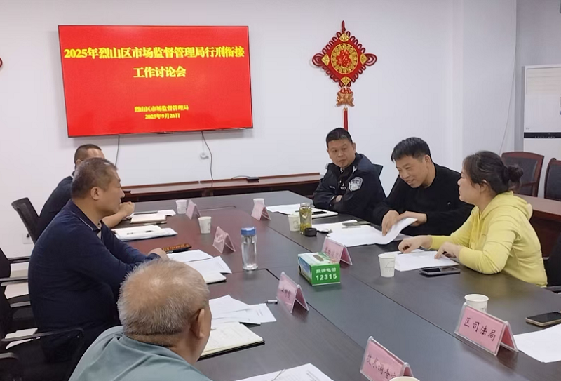 近日,烈山区市场监督管理局牵头联合区人民检察院、公安烈山分局、区司法局等单位,组织召开2025年烈山区市场监管领域行刑衔接工作专题讨论会。