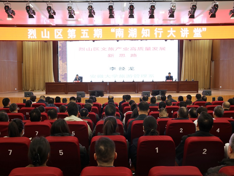 12月16日下午,烈山区第五期“南湖知行大讲堂”在科创大厦举办,安徽大学旅游管理系教授李经龙围绕“烈山区文旅产业高质量发展的新思路”主题作专题讲座。区委、区人大常委会、区政府、区政协领导班子成员,区法院,区检察院领导班子成员,区直单位主要负责同志,各镇(街道)及驻烈单位主要负责同志参加学习。