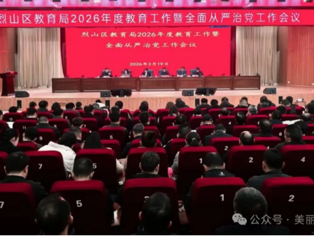 3月19日上午,2026年烈山区教育工作会议暨区教育系统全面从严治党工作会议在区科创大厦第二会议室召开。区政府副区长代城艳出席会议并讲话,区教育局党委书记、局长李慎海主持会议。区教育局相关负责同志、各直属学校主要负责人等参加会议。