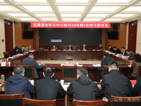 4月20日,区委召开理论学习中心组2026年第5次学习研讨会议。区委书记刘明主持会议并讲话,区委理论学习中心组成员、部分区直单位主要负责同志参加会议。