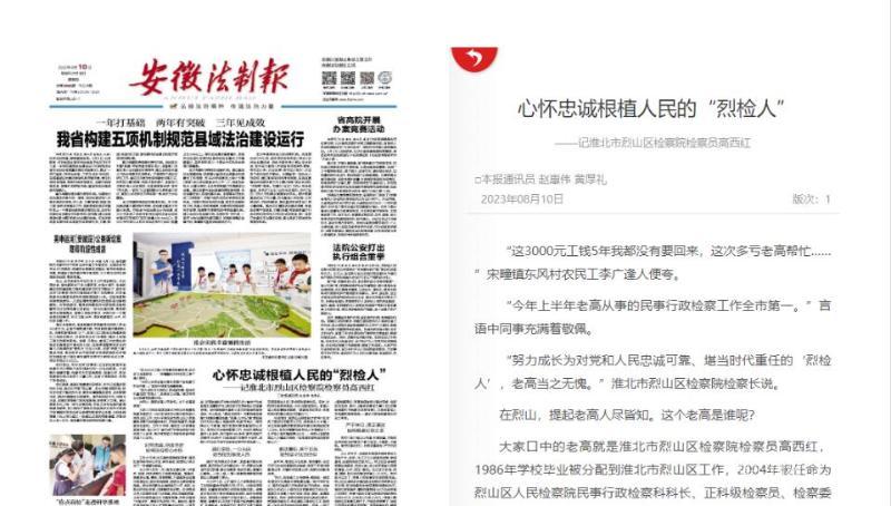 【媒体关注】安徽法制报点赞:心怀忠诚根植人民的“烈检人”——记烈山区检察院检察员高西红
