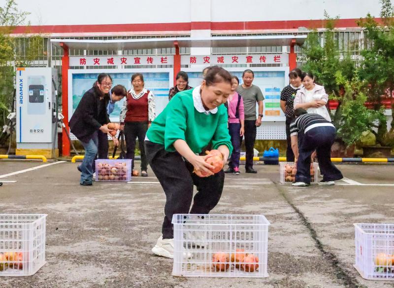 在榴园社区广场,一场农民趣味运动会也在当天上午火热开展。剥石榴籽粒、摸着石头过河、抢运石榴进库等农趣比赛轮番上演,农民选手们踊跃参与、各显身手,在欢声笑语中体验劳动之乐、共享丰收喜悦。