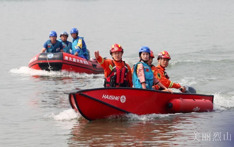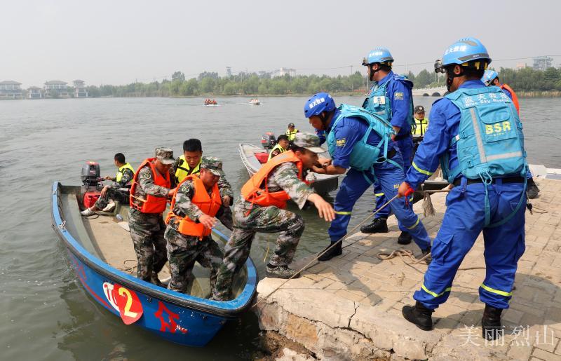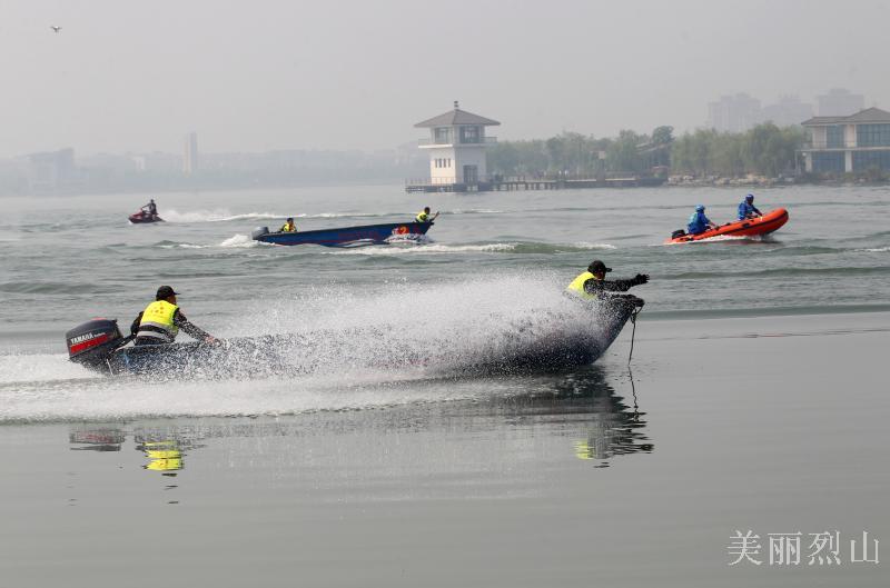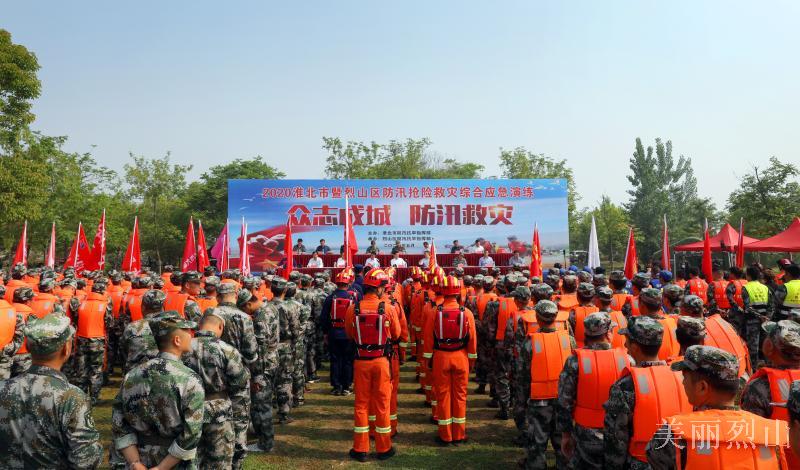 5月15日上午,2020年淮北市暨烈山区防汛抢险应急演练在南湖举行。市政府副市长章银发现场观摩并担任演练总指挥。