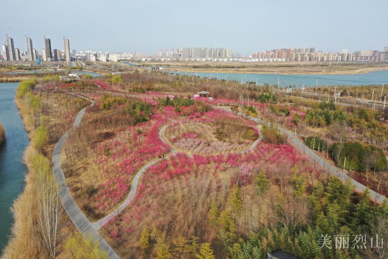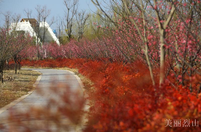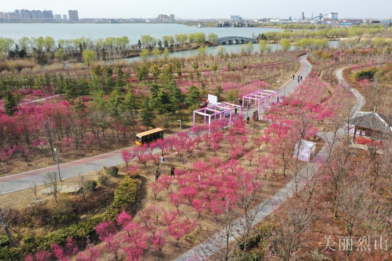蓝天映衬着梅花,湖水映衬着暗香亭,梅园内 2万多株,30个品种的梅花竞相开放,花朵硕大,品种繁多,花色奇绝,芳香浓郁,一眼望不尽的梅花与小桥流水相应成趣。行走在这春意盎然的画卷里,春风拂过,就是一阙胜过江南的词。
