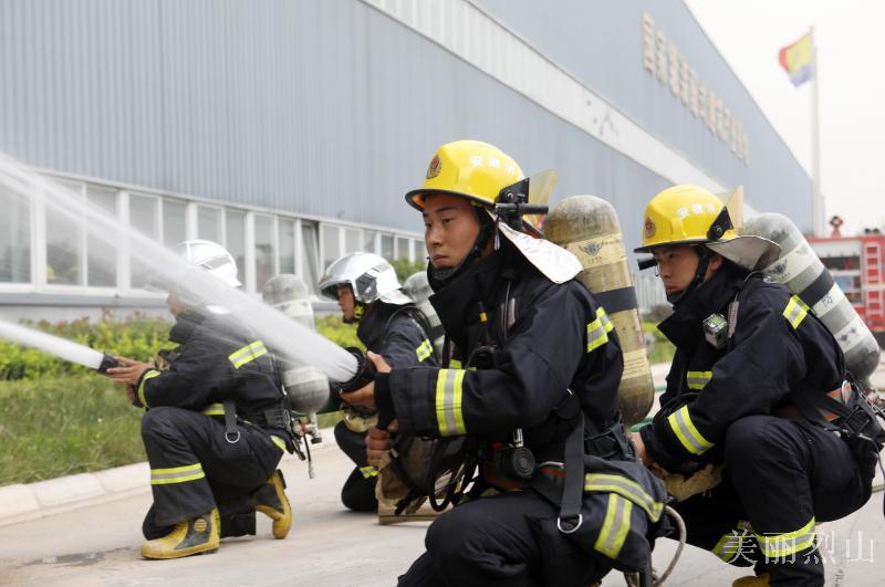 6月29日,烈山区消防应急救援大队队员中煤远大淮北建筑产业有限责任公司开展进行灭火演练。