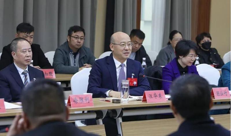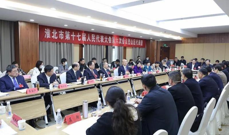 1月12日上午,市委书记汪华东来到市十七届人大六次会议烈山区代表团,与代表们一起审议政府工作报告。