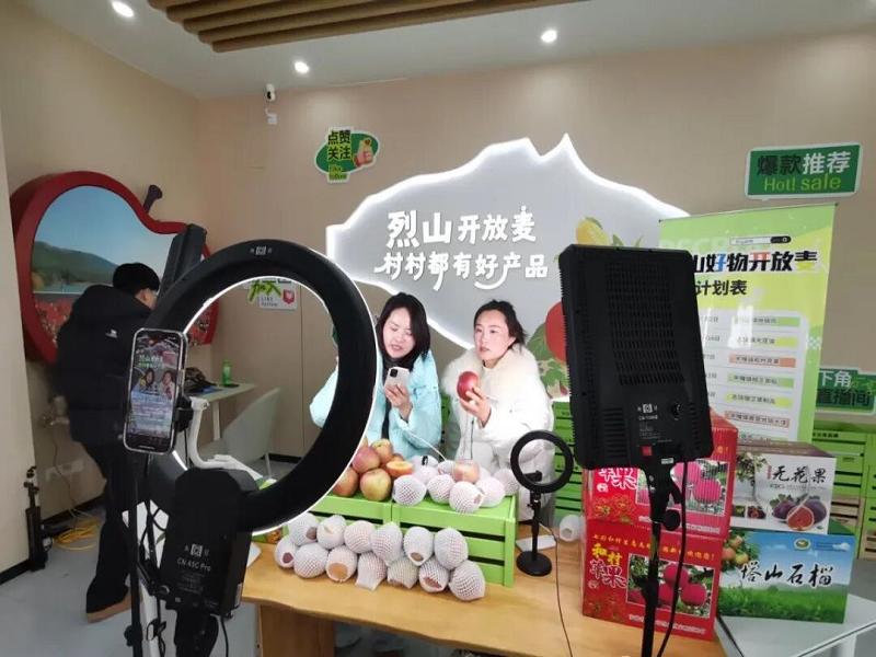 该镇还着力培育电商人才,打造“烈山农场”线上超市、“烈山开放麦”等直播平台,27名本土“新农人”主播化身特产“代言人”,苹果采摘季直播间日均订单超1000单、2.3万斤。如今,和村苹果种植面积达1.1万亩,村民人均收入突破2万元,“卡券+电商”模式让特色产业焕发新生,走出了一条三产融合的乡村振兴之路。