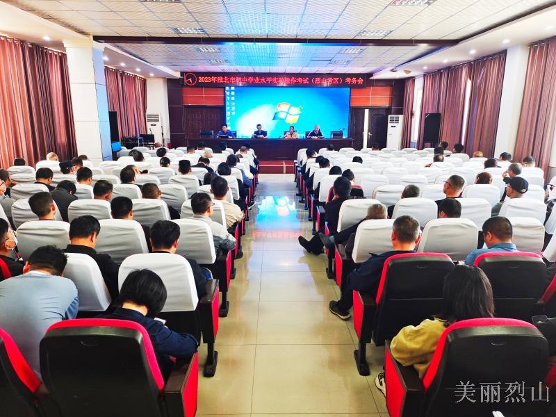 5月11日下午,淮北市2023年初中学业水平实验操作考试烈山考区考务会议在区实验中学四楼会议室召开。会议由区教育局教育办主任李建华主持,区教育局党委书记、局长李慎海,区教育局党委委员、副局长陈欣出席会议并作工作要求。烈山考区全体工作人员,区实验中学考点全体监考组长、监考员、实验员及评分员参加考务会议。