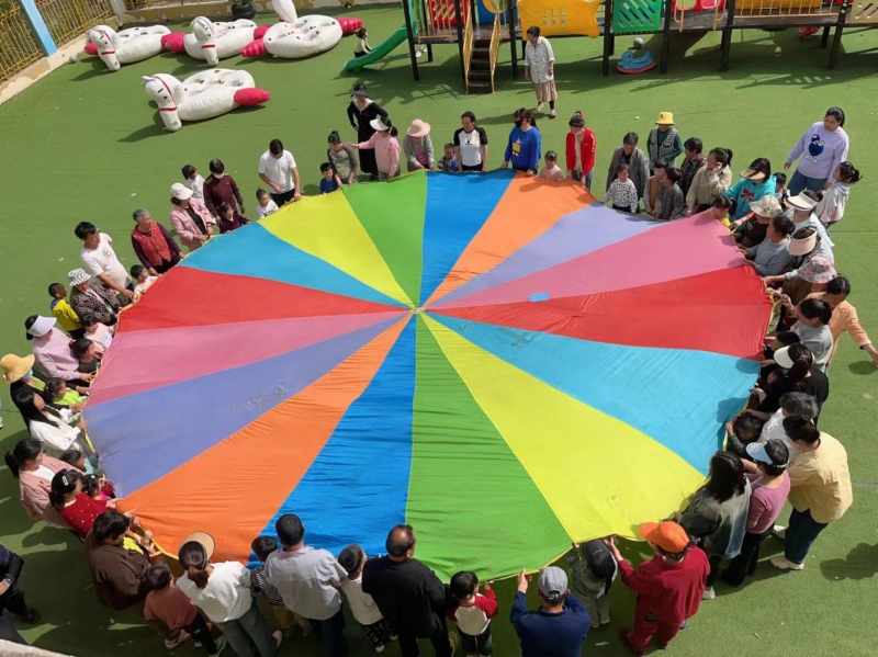 踏着欢快的音乐,各班小运动员步伐整齐,眼神坚定,每个方阵都是最闪耀的小小运动健儿。到场后,运动员们开始了律动热身,紧接着紧张有序的运动会就正式开始了。本次运动会遵循幼儿年龄特点,小中大三个班级融合健体、益智、趣味、协作等诸多元素,分别参加了“飞马游戏”“拉雪橇”“彩虹伞”“踩气球”“爬绳索”五个运动项目。小朋友和大朋友都玩得不亦乐乎,整个操场上都是开心的笑声和加油声。