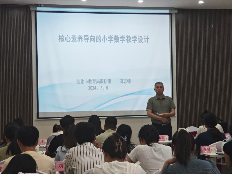 本次培训聚焦“怎样上好一节课、怎样备好一节课、名师成长之路、师德师风建设”四个主题,淮北市教育科学研究所小学数学教研员田志锋、淮北市人民路学校校长韩东、淮北市教育科学研究所小学语文教研员张德华、安徽省骨干教师魏雪雁、濉溪县实验小学党总支书记周文娟、淮北市教育科学研究所副主任李乐峰分别作专题讲座《核心素养导向的小学数学教学设计》《激趣循理启智:上好课的有效路径》《怎样备好常态语文课》《例谈教师成长与发展》《“育”见美好的那些事儿》《基于新课程方案和认知加工理论的教学设计与实施》专题报告。