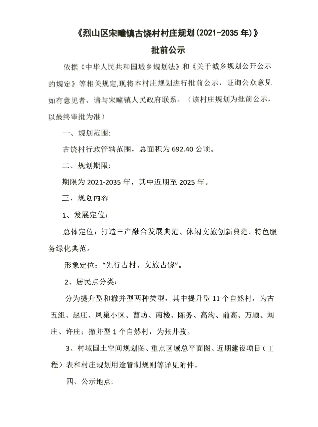 《烈山区宋疃镇古饶村村庄规划(2021-2035年)》批前公示