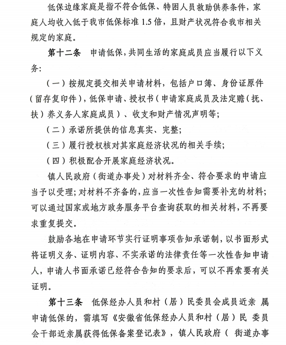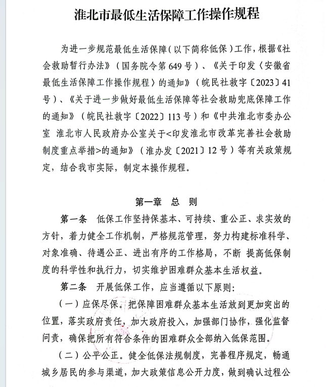 关于印发《安徽省最低生活保障工作操作规程》的通知