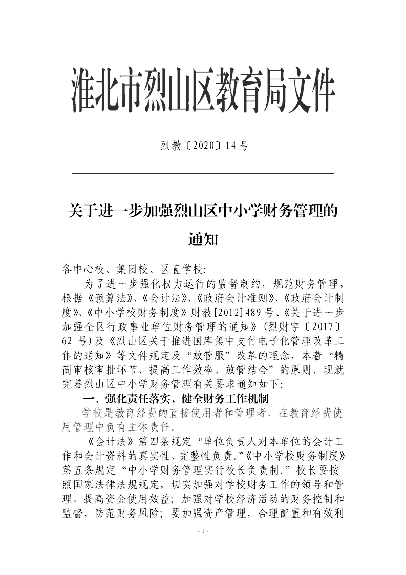 烈教〔2020〕14号关于进一步加强烈山区中小学财务管理的通知