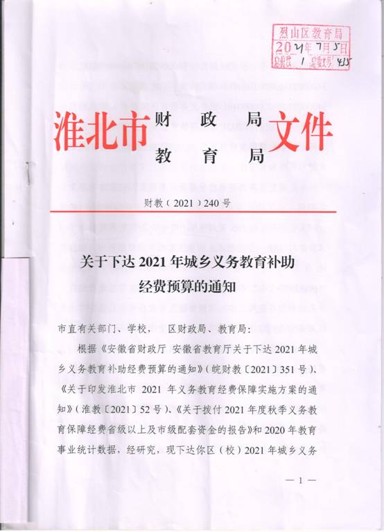 关于下达2021年城乡义务教育补助经费预算的通知