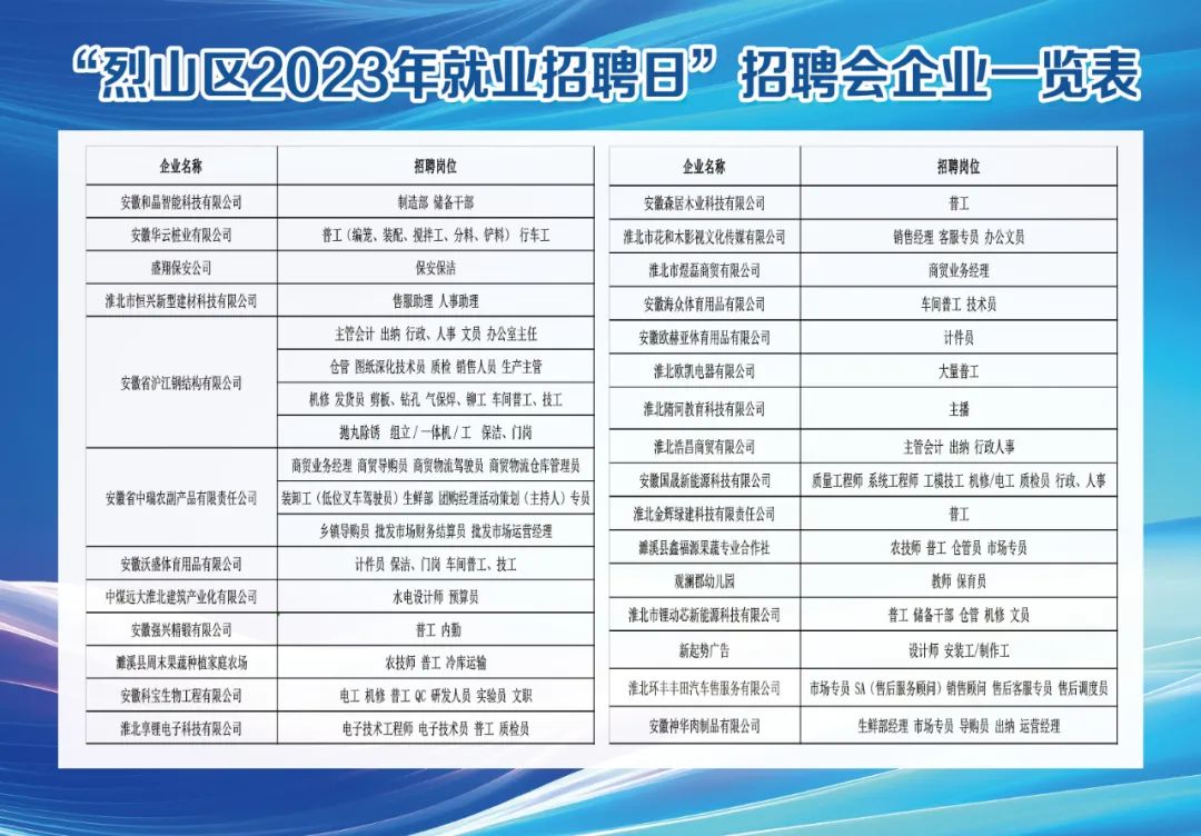 1、活动通知:烈山区2023年就业招聘日专场招聘会