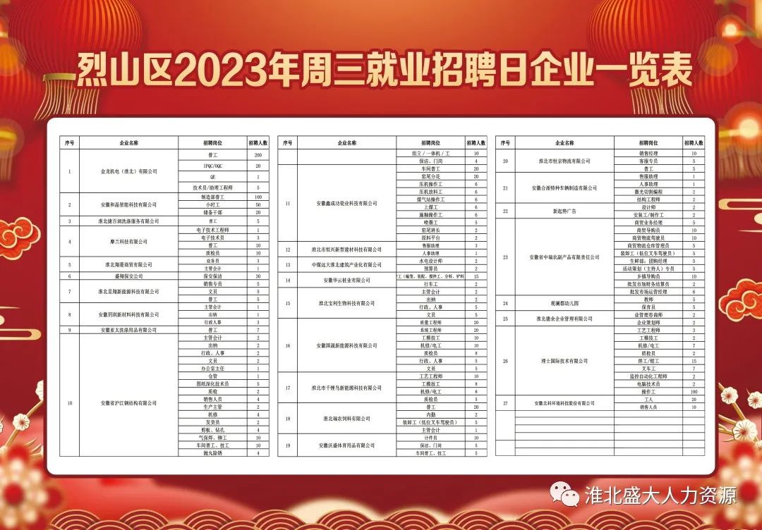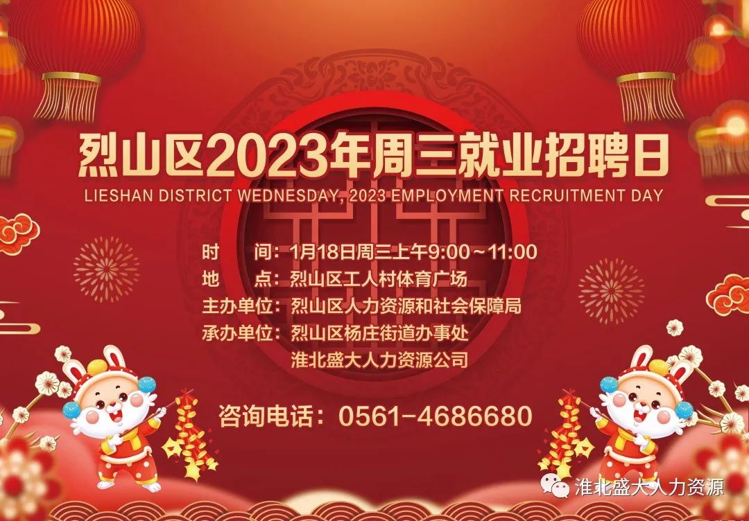 【公益招聘】烈山区2023年周三招聘日专场招聘会