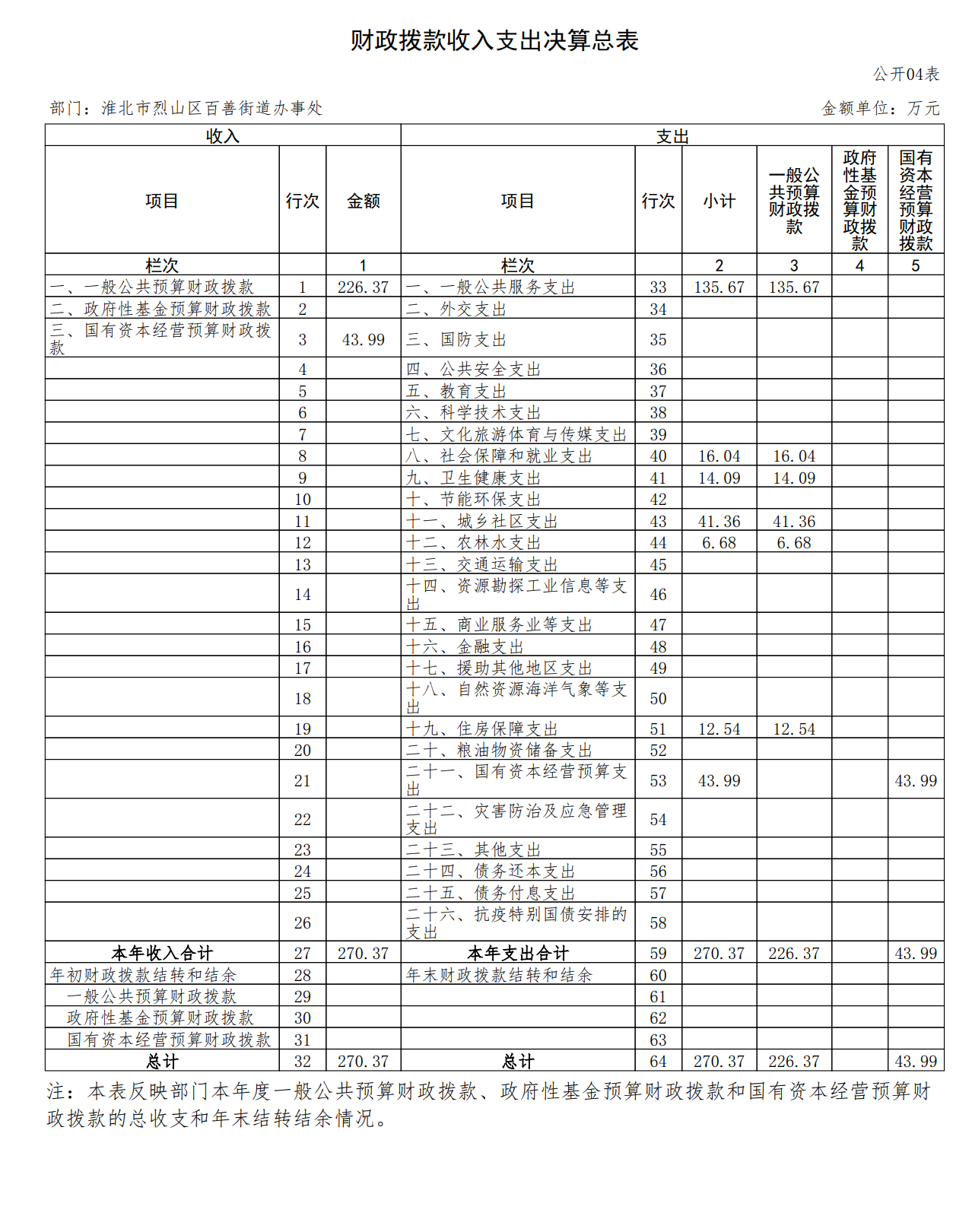 淮北市烈山区百善街道办事处2024年财政拨款收入支出决算总表
