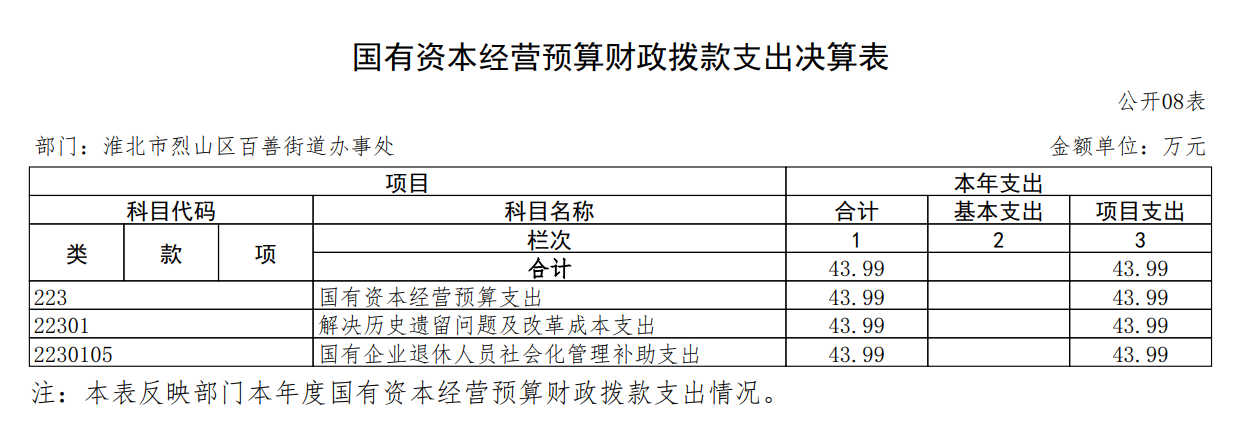 淮北市烈山区百善街道办事处2024年国有资本经营预算财政拨款支出决算表