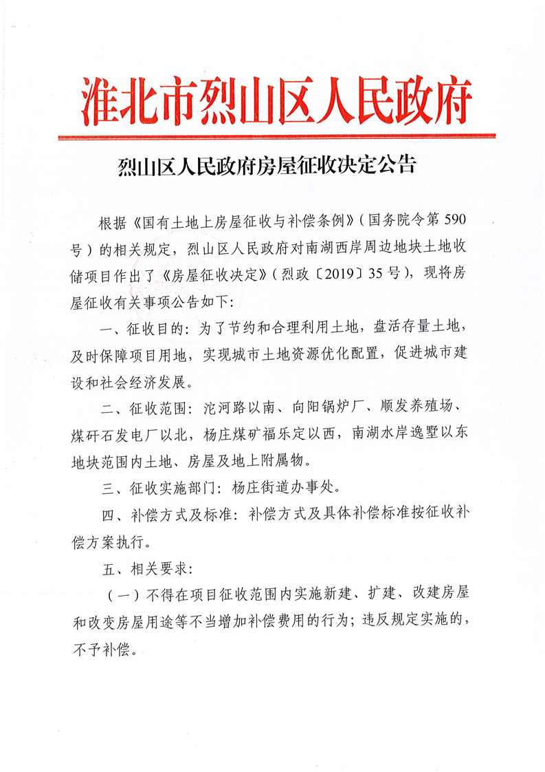 南湖西岸周边地块房屋征收决定公告