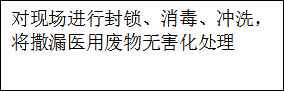 4、采取适当的安全处置措施,对泄漏物及受污染的区域、物品进行消毒或者其他无害化处置,必要时封锁污染区域,以防扩大污染;