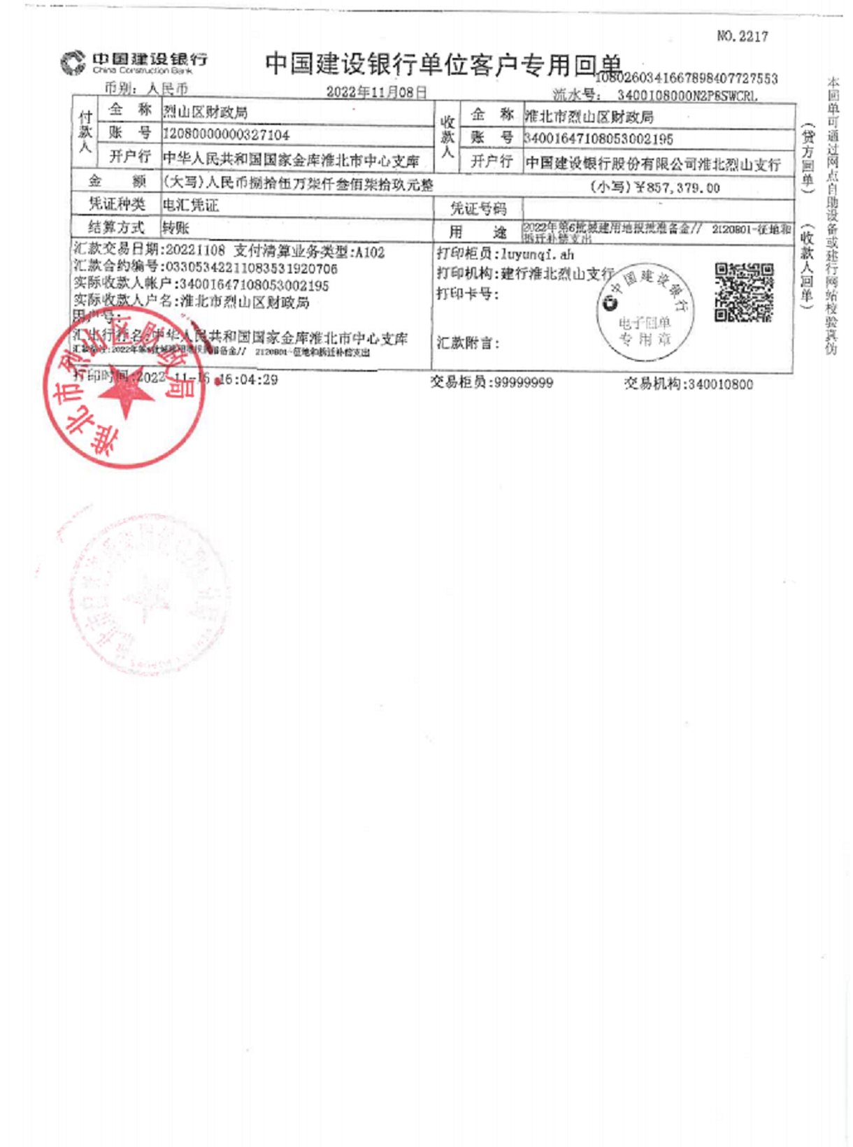 淮北市2022年度第06批次城市准备金费用支付凭证