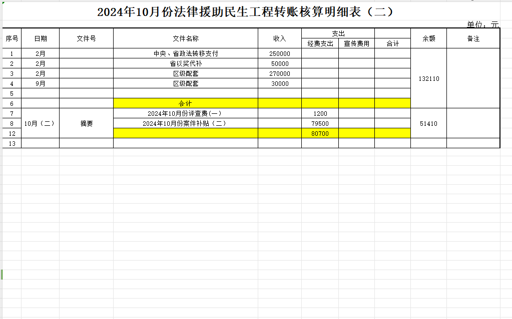 2024年10月份法律援助民生工程转账核算明细表(二)
