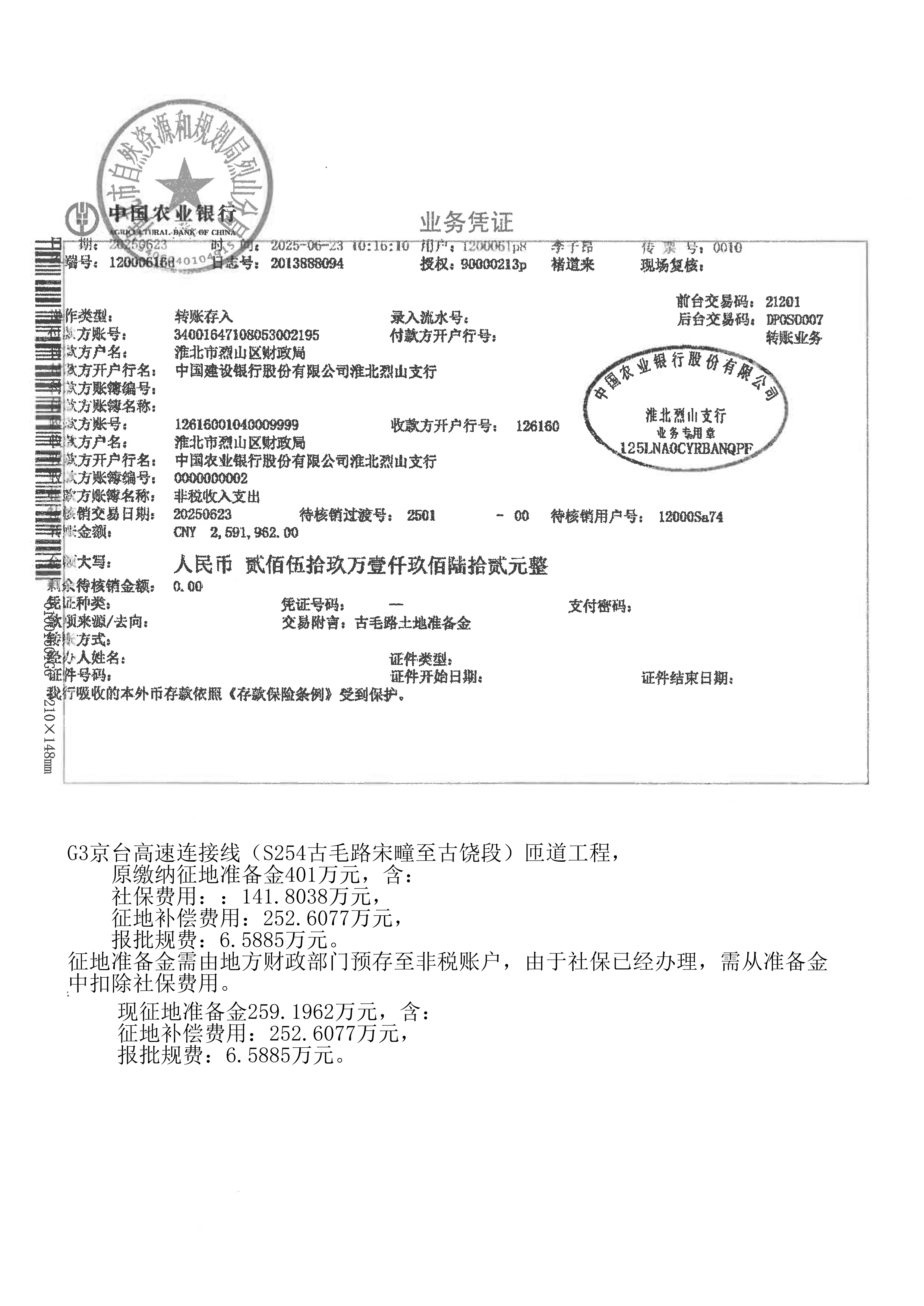 京台高速连接线宋疃(S254古毛路至古饶段)匝道工程准备金费用支付凭证