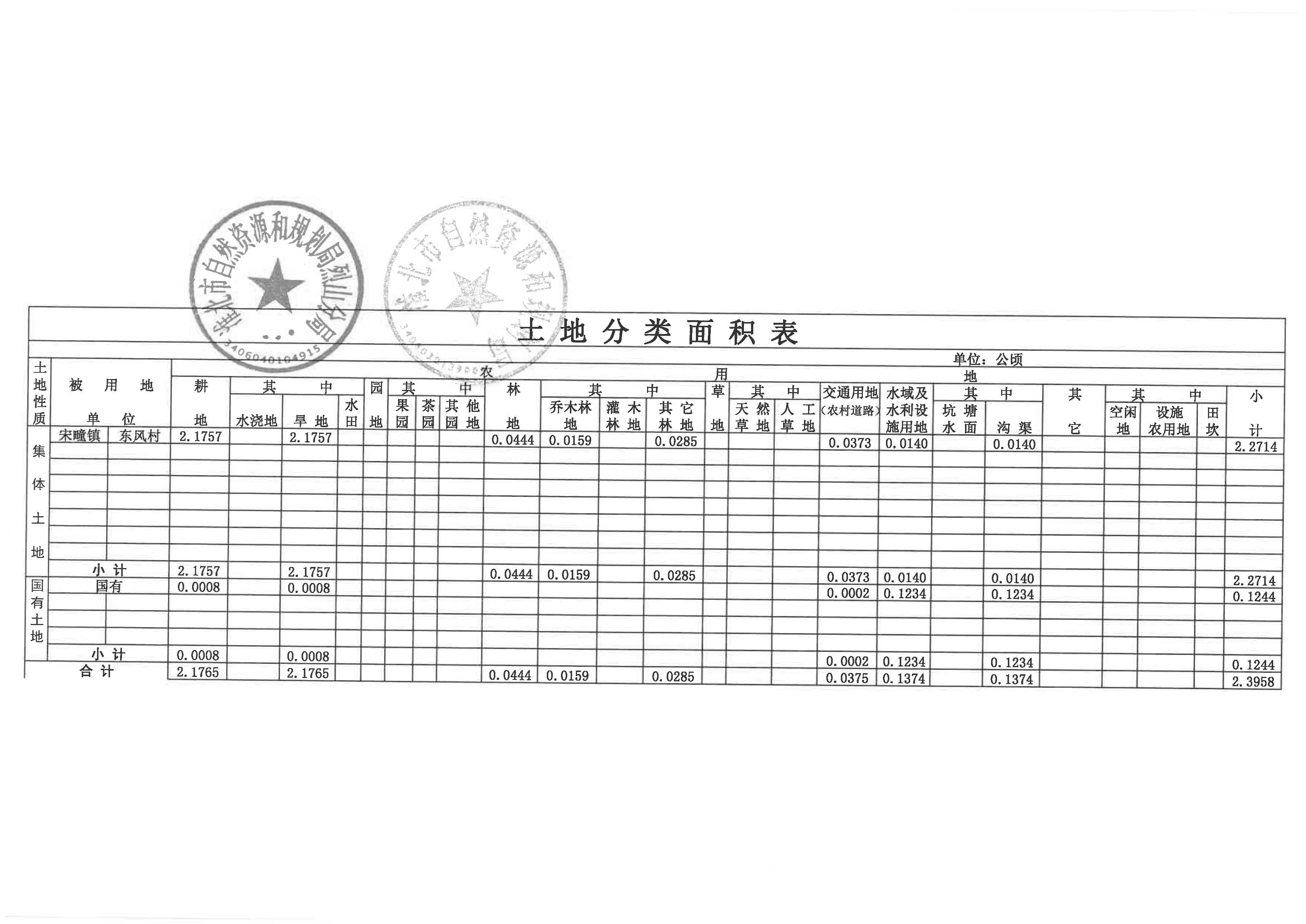 土地分类面积表(京台高速连接线宋疃(S254古毛路至古饶段)匝道工程)
