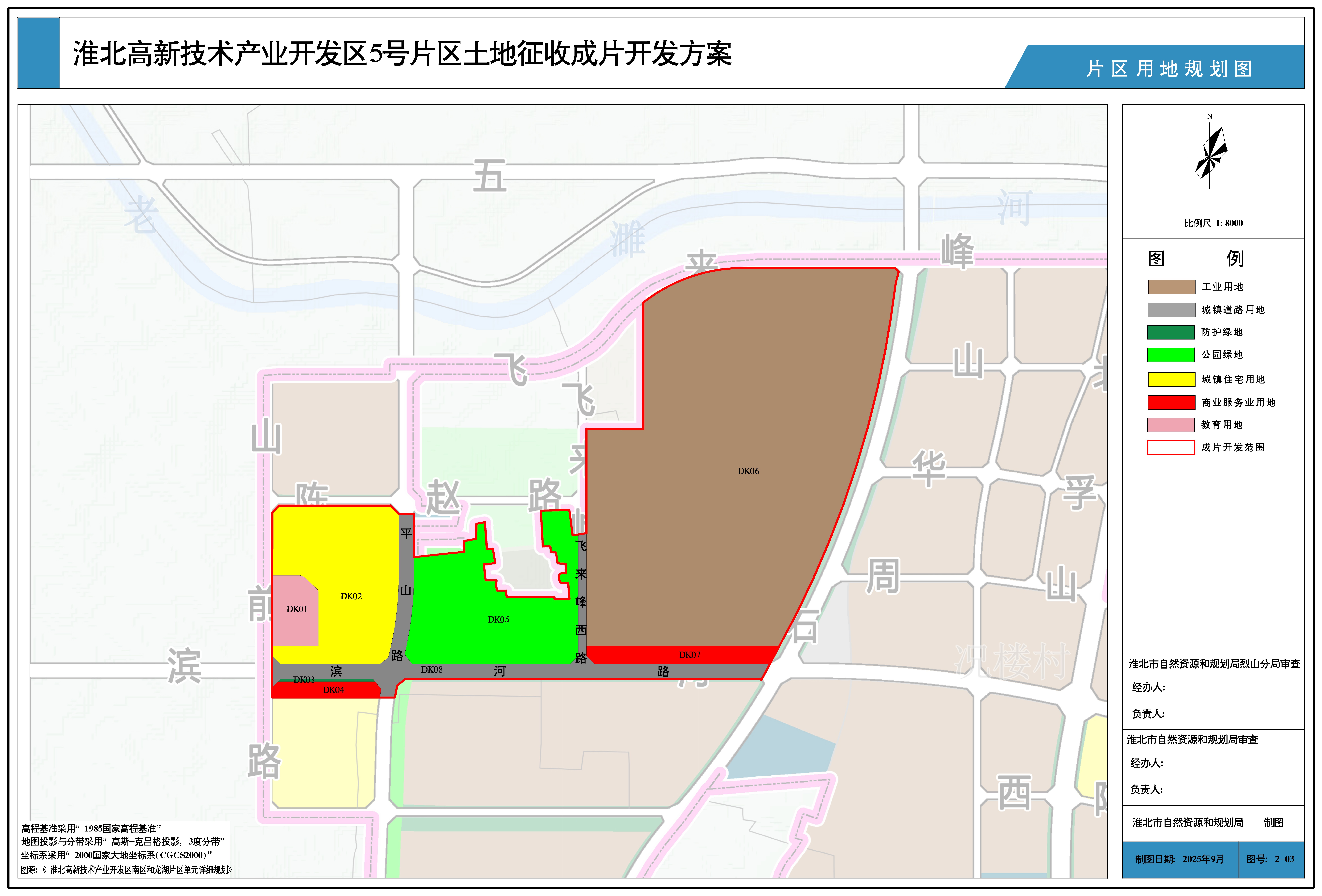 该片区位于《淮北市国土空间总体规划(2021-2035年)》确定的城镇开发边界的集中建设区内,不占用永久基本农田和生态保护红线。规划用地符合《淮北高新技术产业开发区南区和龙湖片区单元详细规划》。