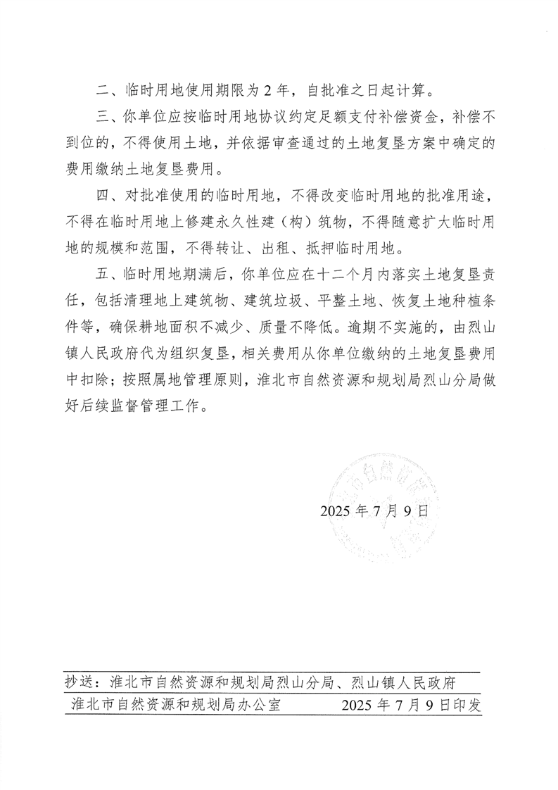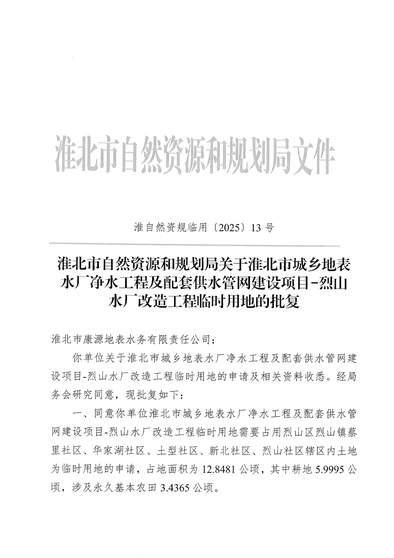 淮北市城乡地表水厂净水工程及配套供水管网建设项目-烈山水厂改造工程临时用地