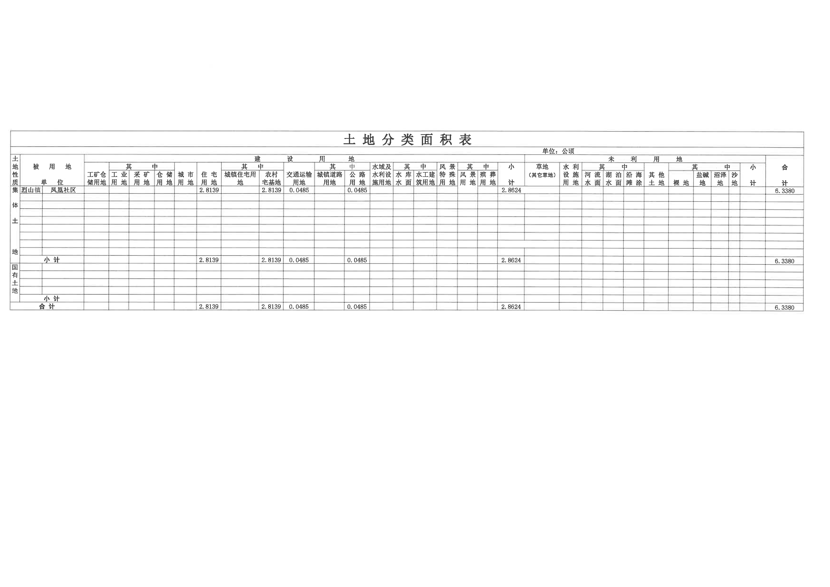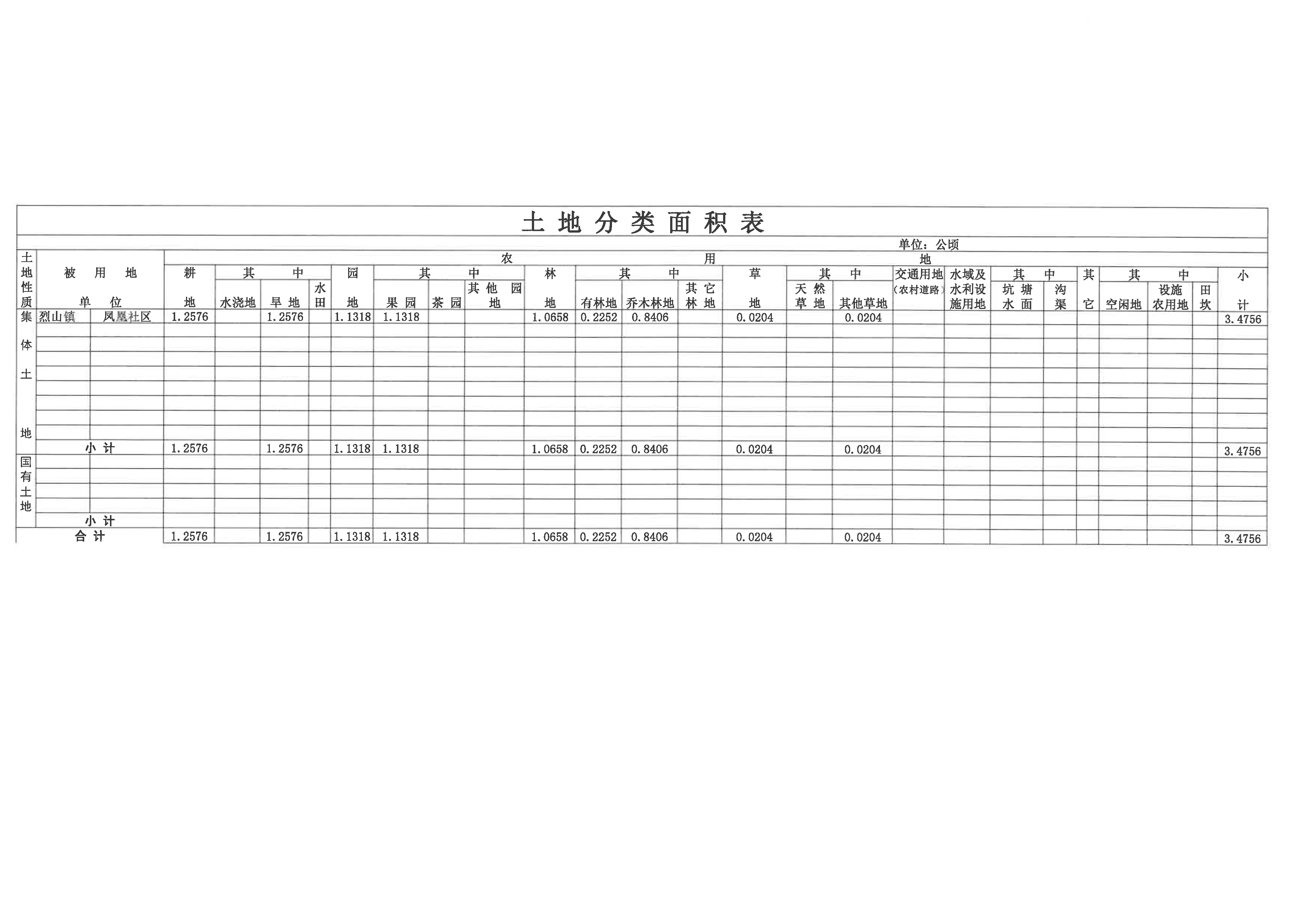 土地分类面积表(淮北市烈山区2025年第1批次(工矿废弃地复垦挂钩)城镇建设用地)