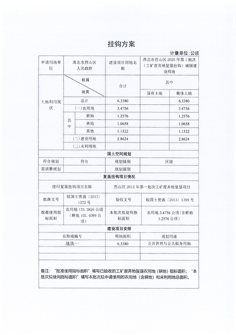 工矿废弃地复垦挂钩建设用地呈报挂钩方案(淮北市烈山区2025年第1批次(工矿废弃地复垦挂钩)城镇建设用地)