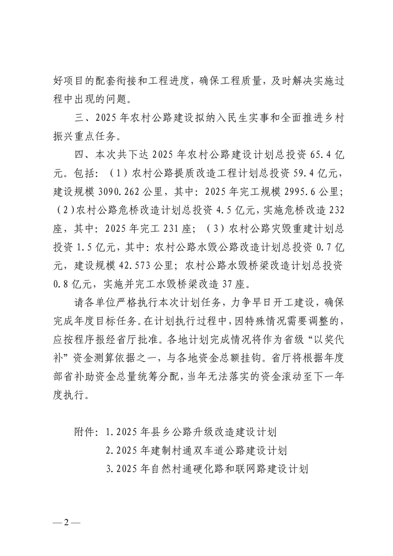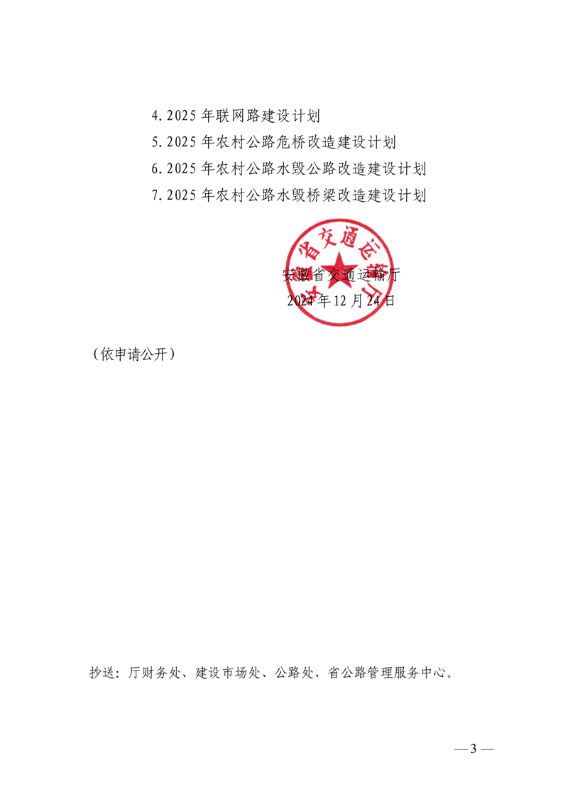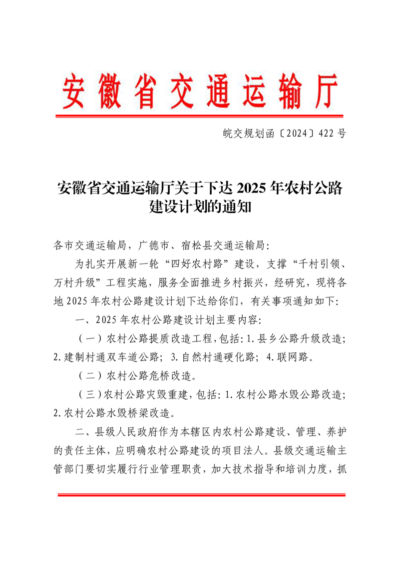 【农村公路建设计划】安徽省交通运输厅关于下达2025年农村公路建设计划的通知