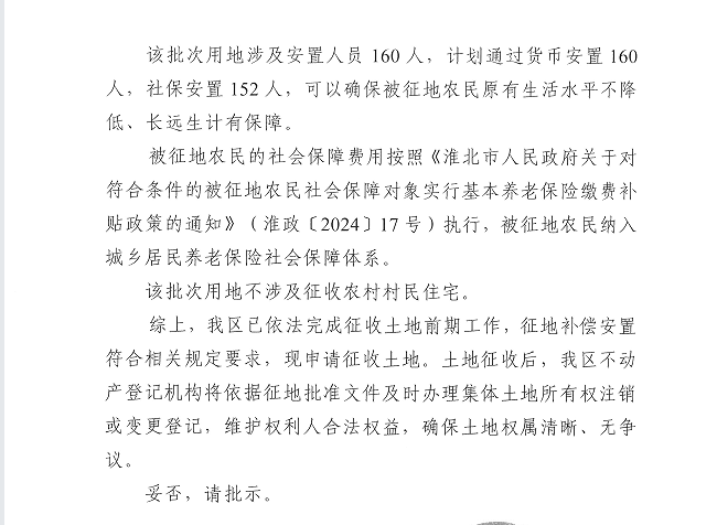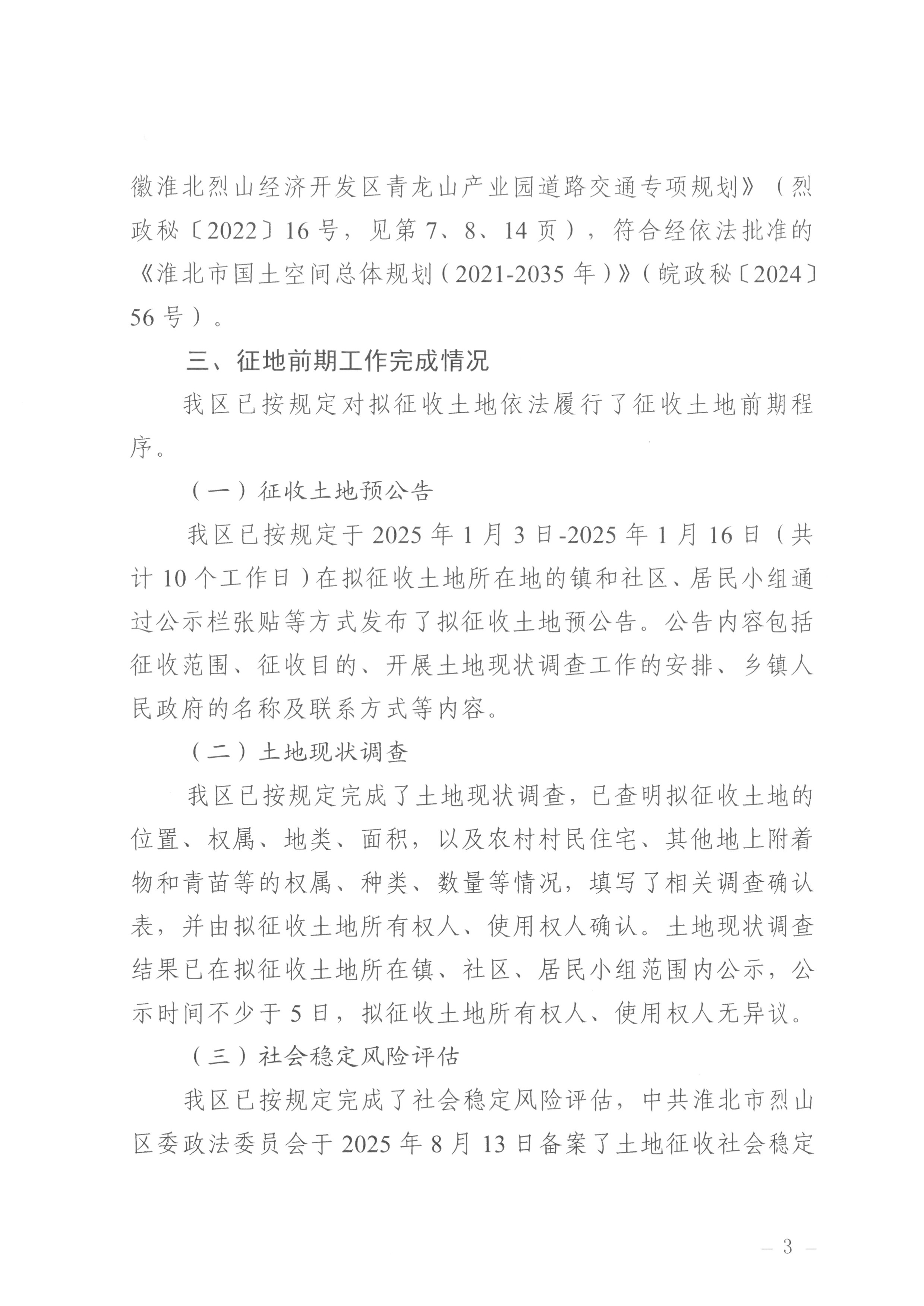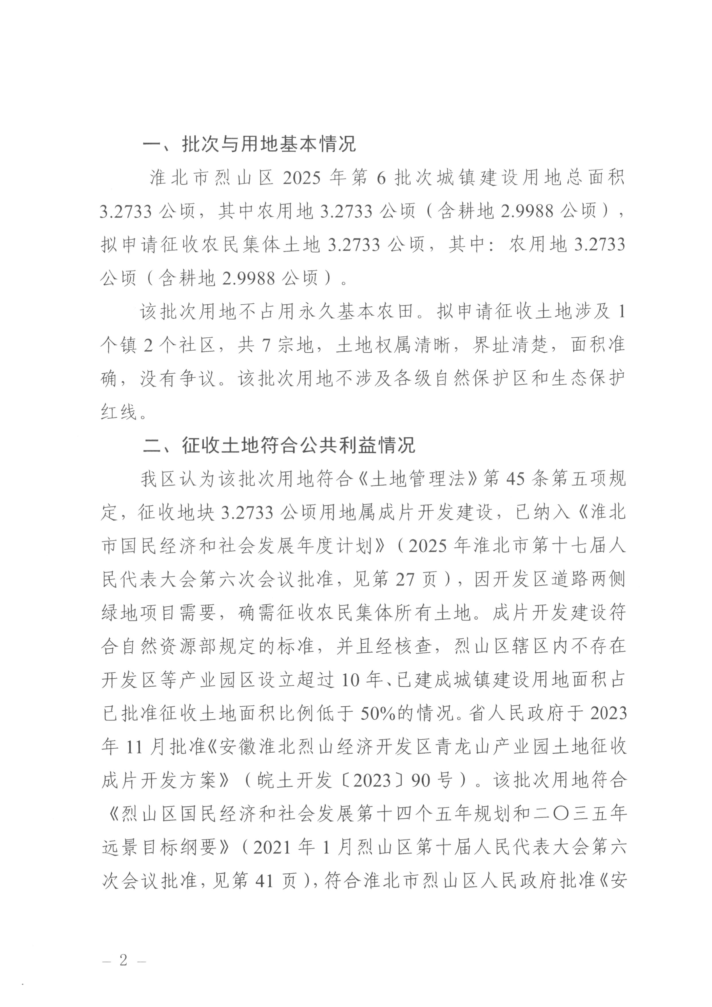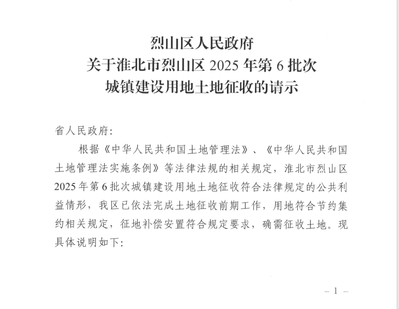 烈山区人民政府关于淮北市烈山区2025年第6批次城镇建设用地土地征收的请示