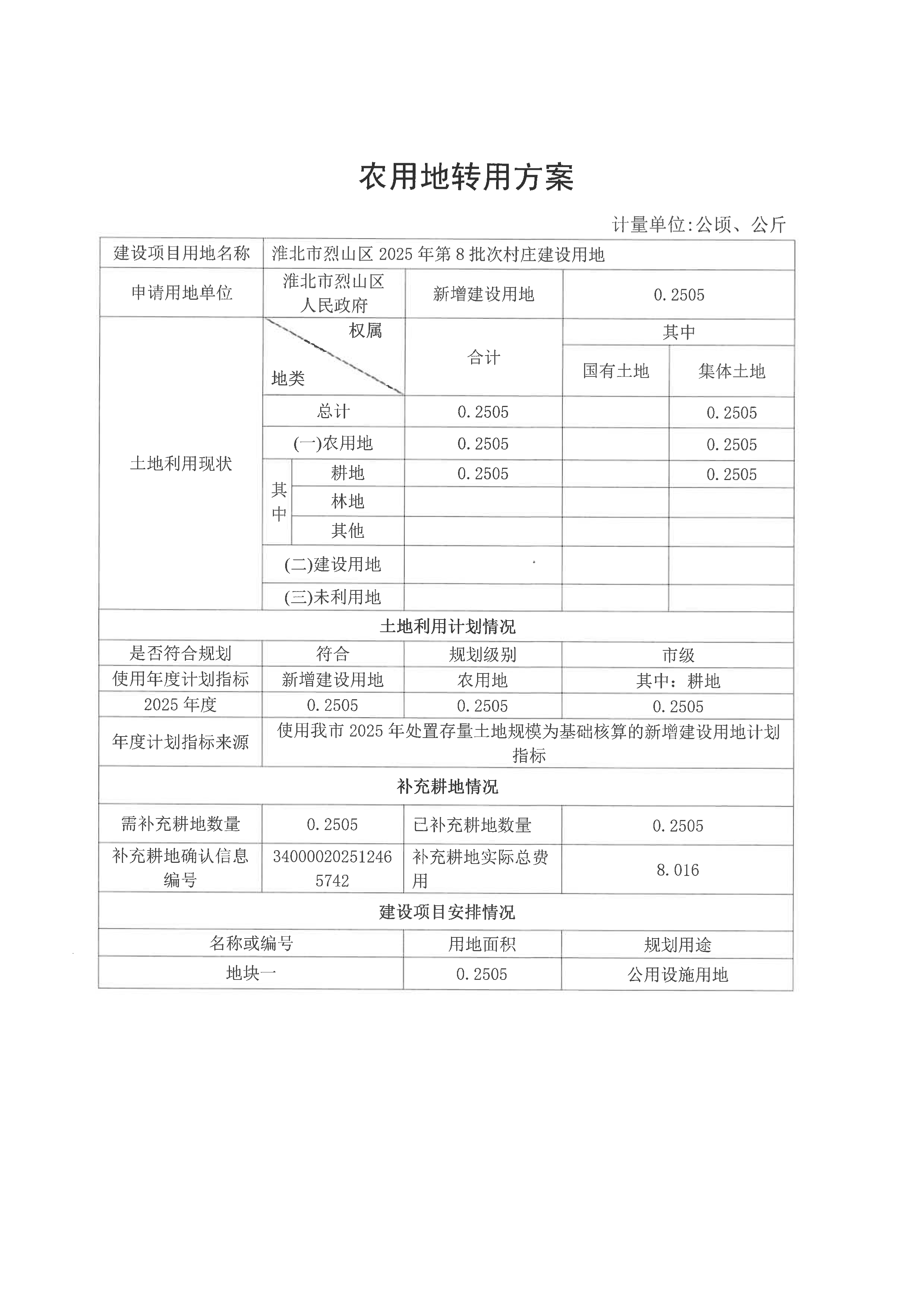 建设用地呈报农用地转用方案(烈山区2025年第8批次村庄建设用地)