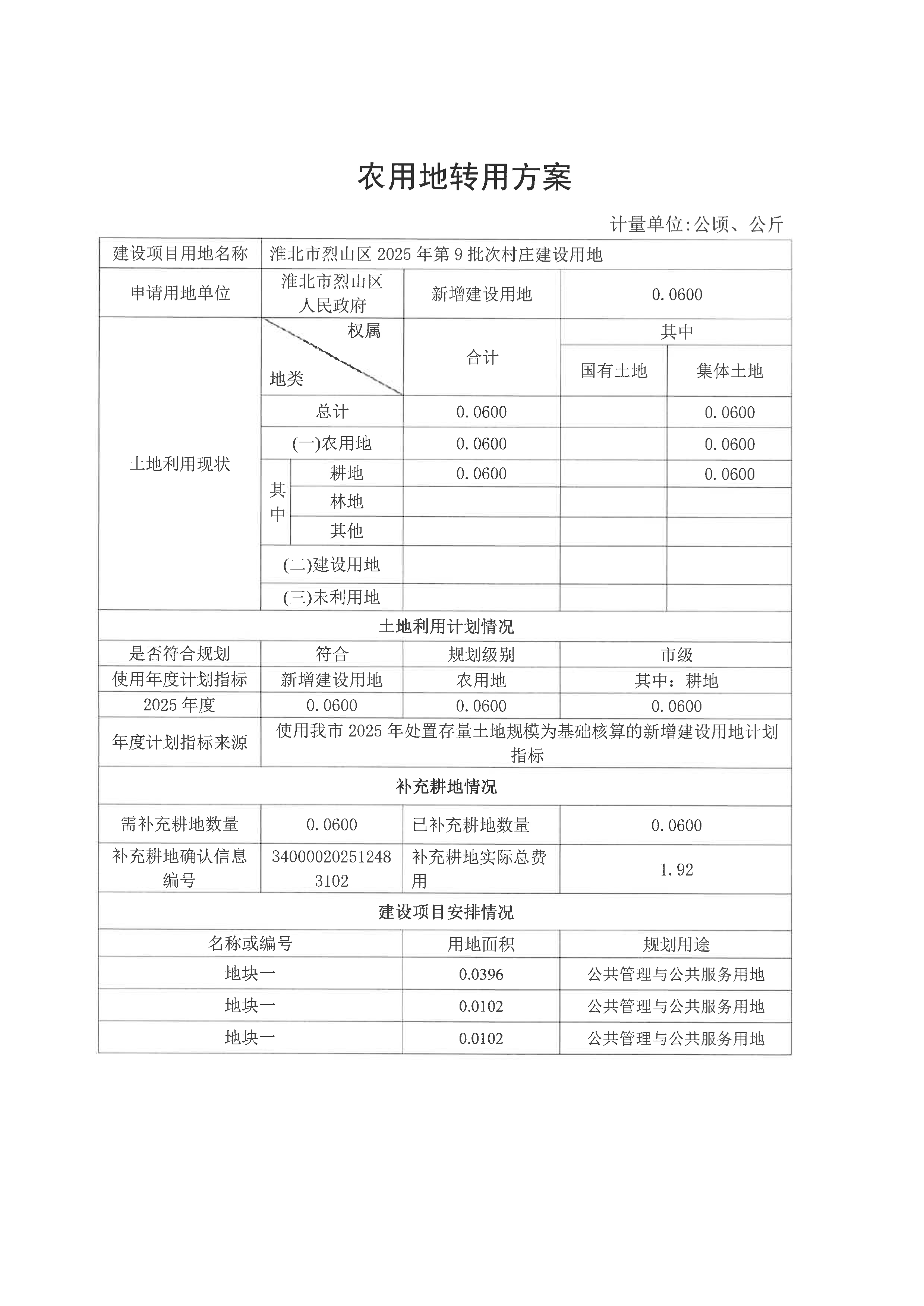 建设用地呈报农用地转用方案(烈山区2025年第9批次村庄建设用地)