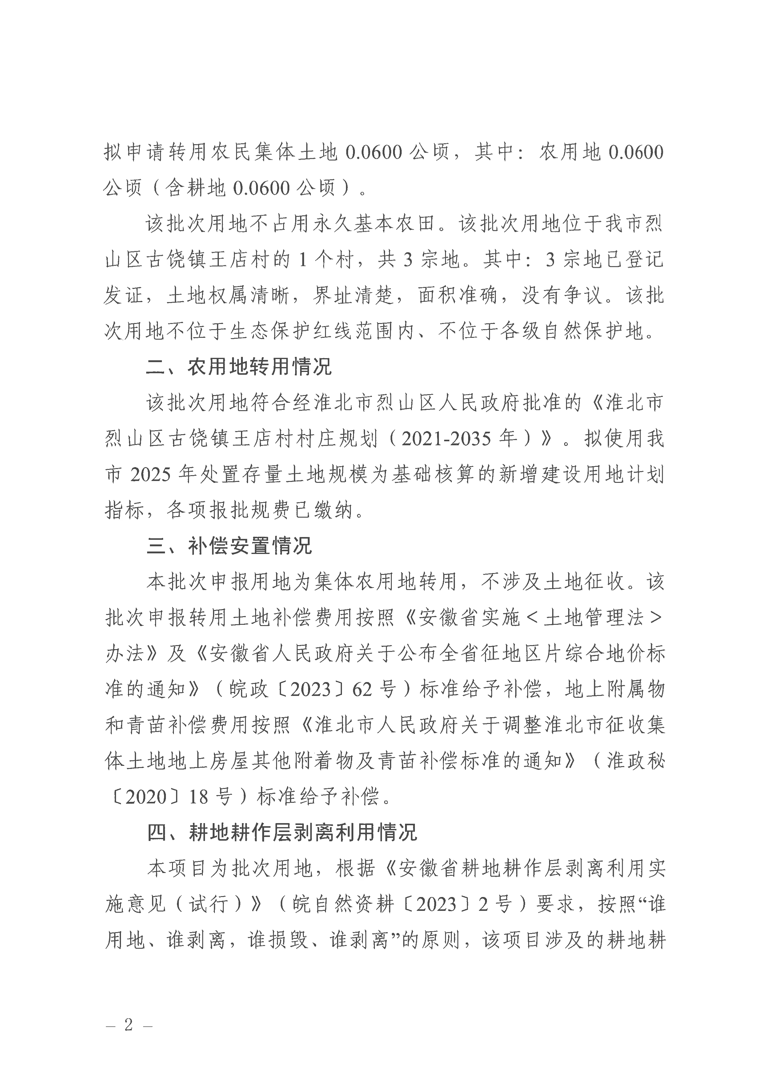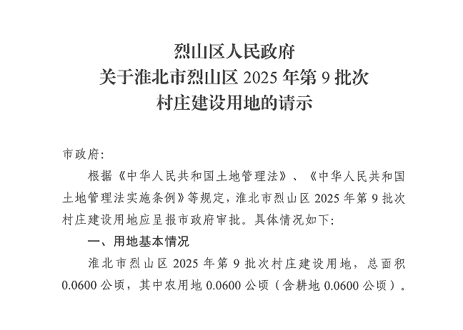 烈山区人民政府关于淮北市烈山区2025年第9批次村庄建设用地的请示