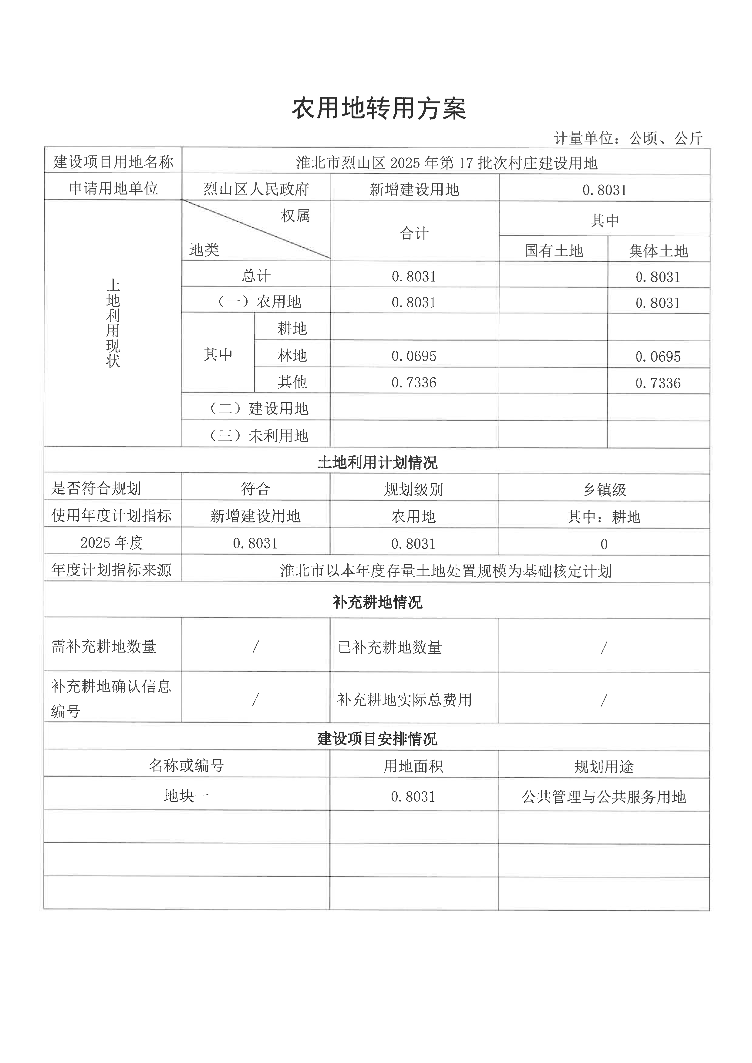 建设用地呈报农用地转用方案(烈山区2025年第17批次村庄建设用地)