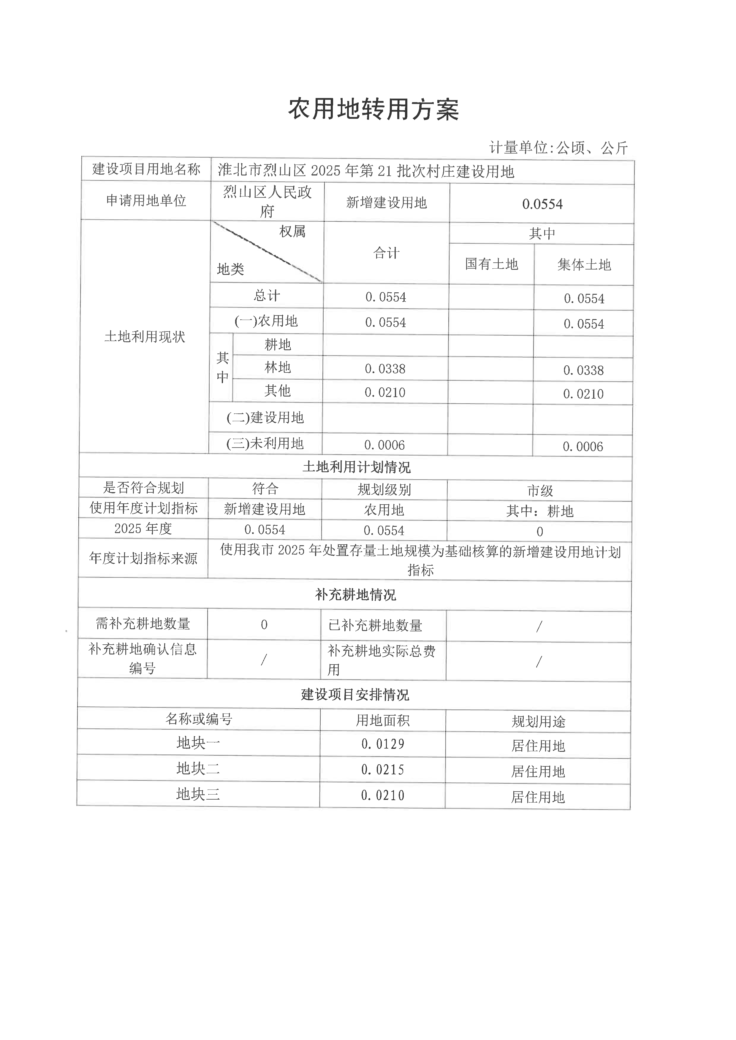 建设用地呈报农用地转用方案(烈山区2025年第21批次村庄建设用地)