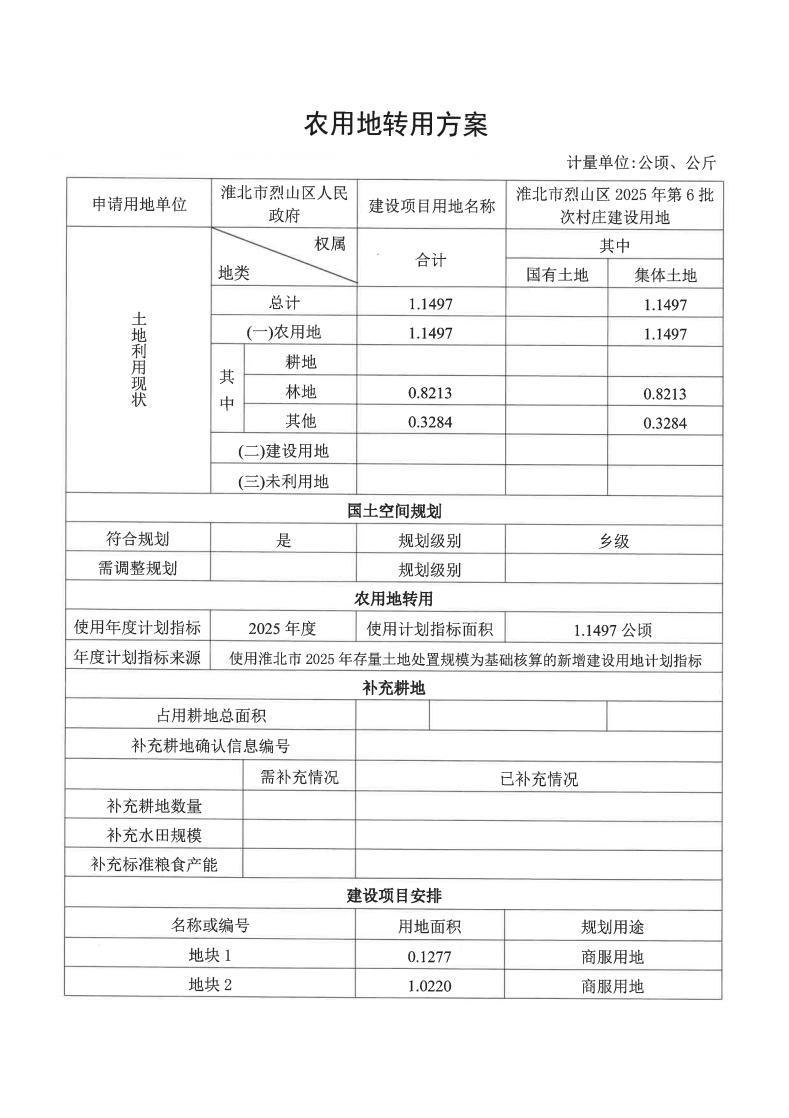 建设用地呈报农用地转用方案(烈山区2025年第20批次村庄建设用地)