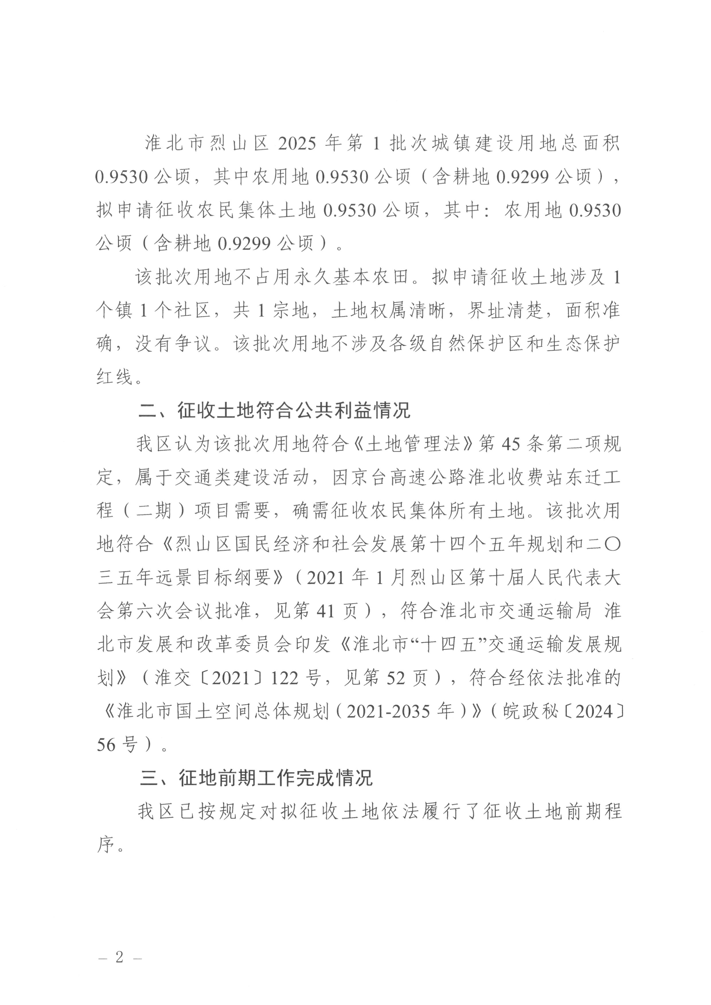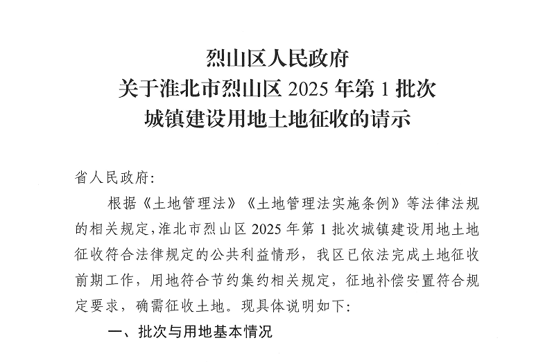 烈山区人民政府关于淮北市烈山区2025年第1批次城镇建设用地土地征收的请示