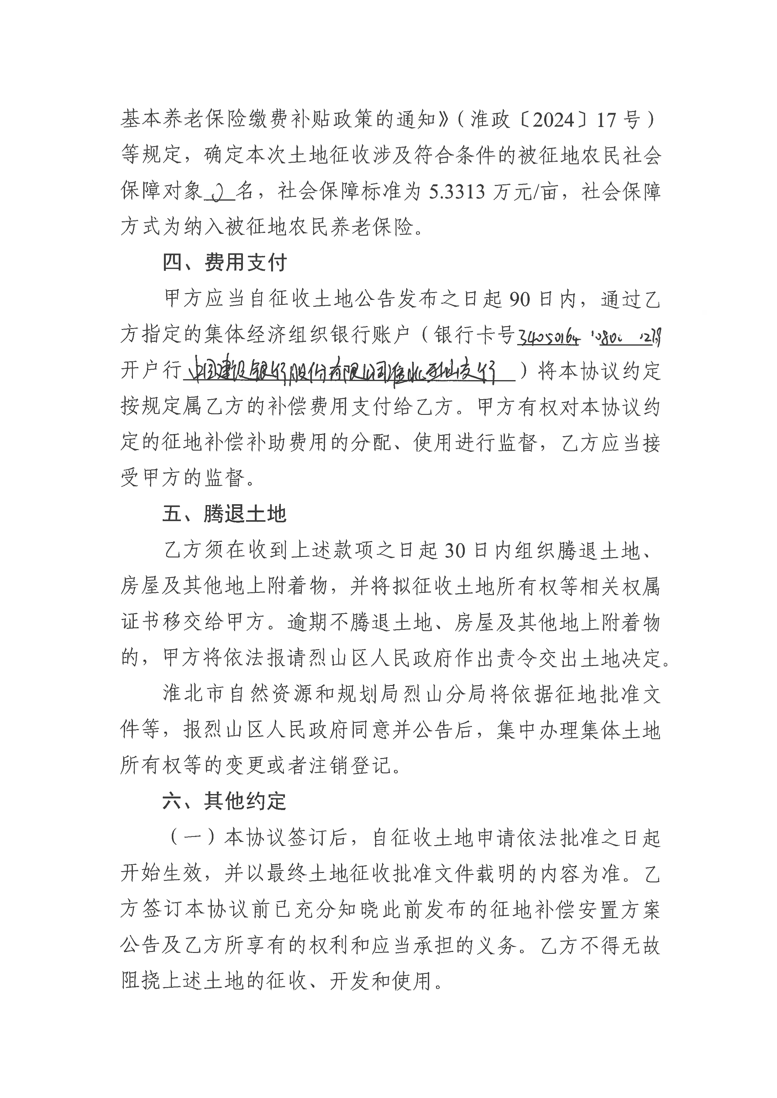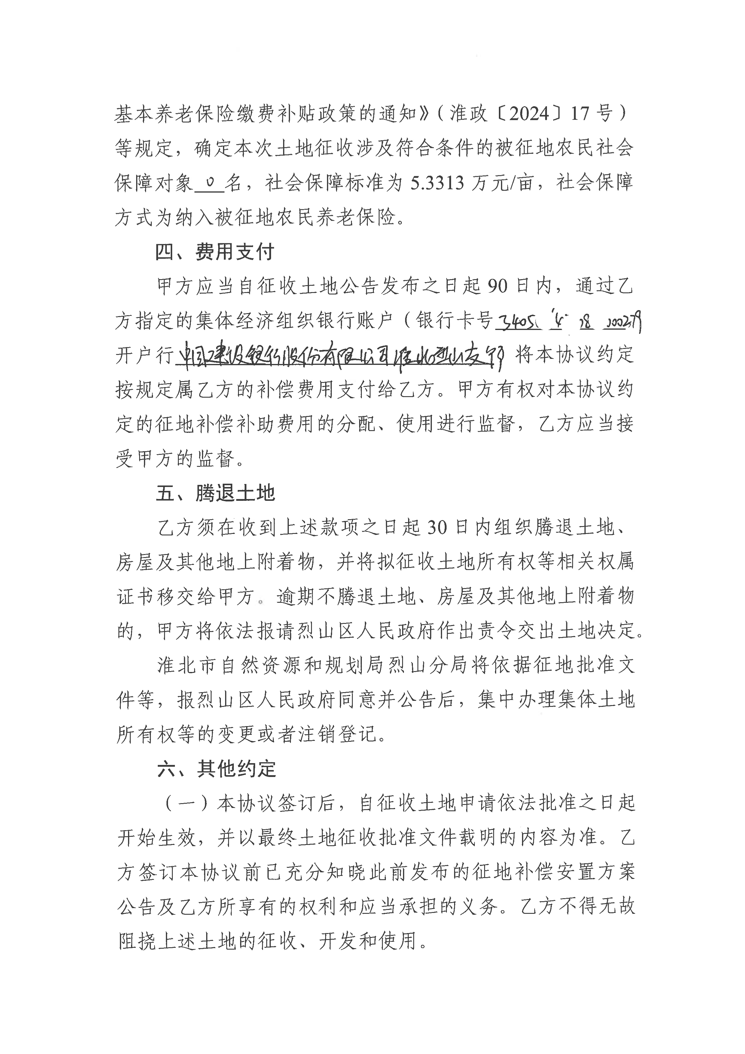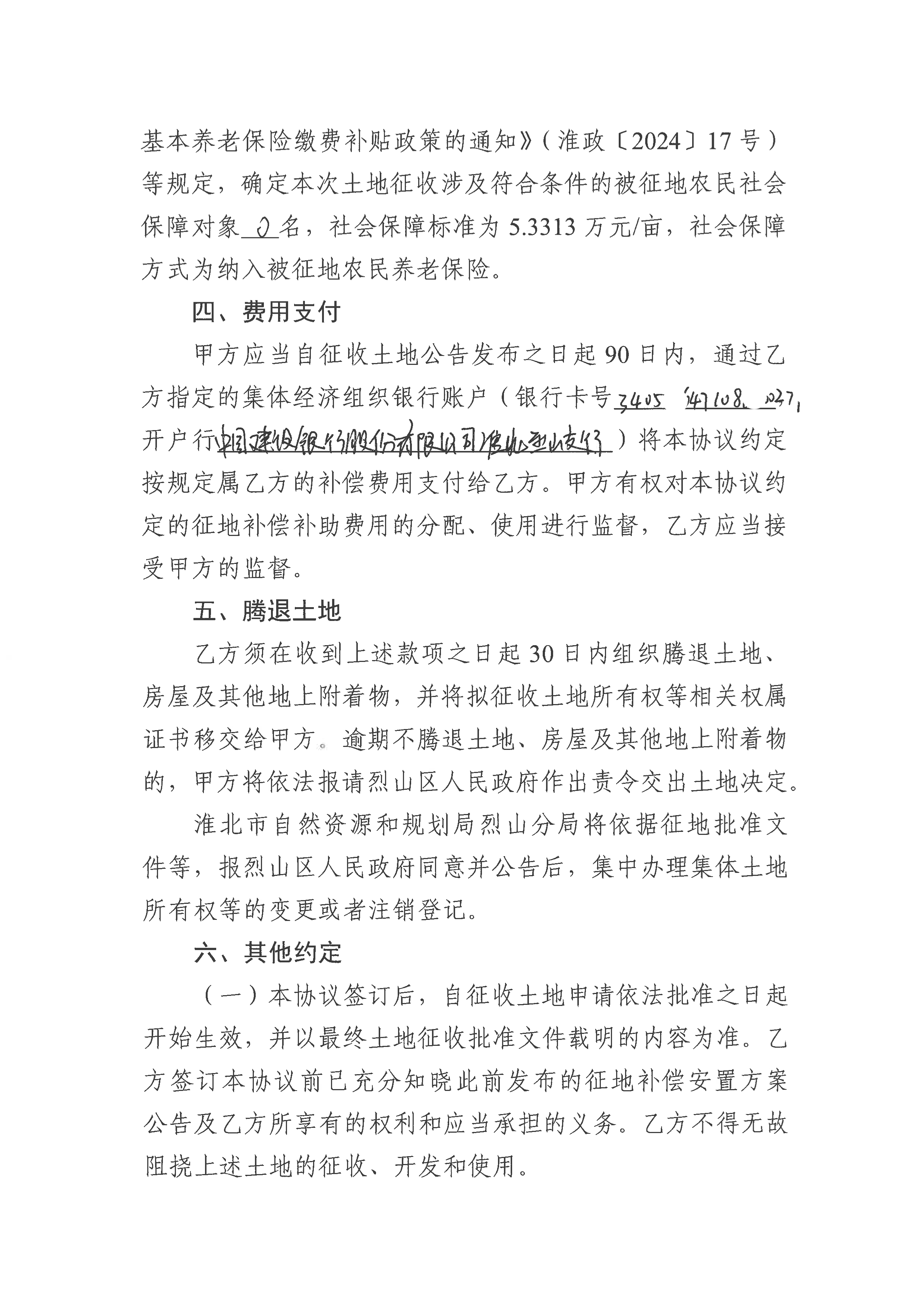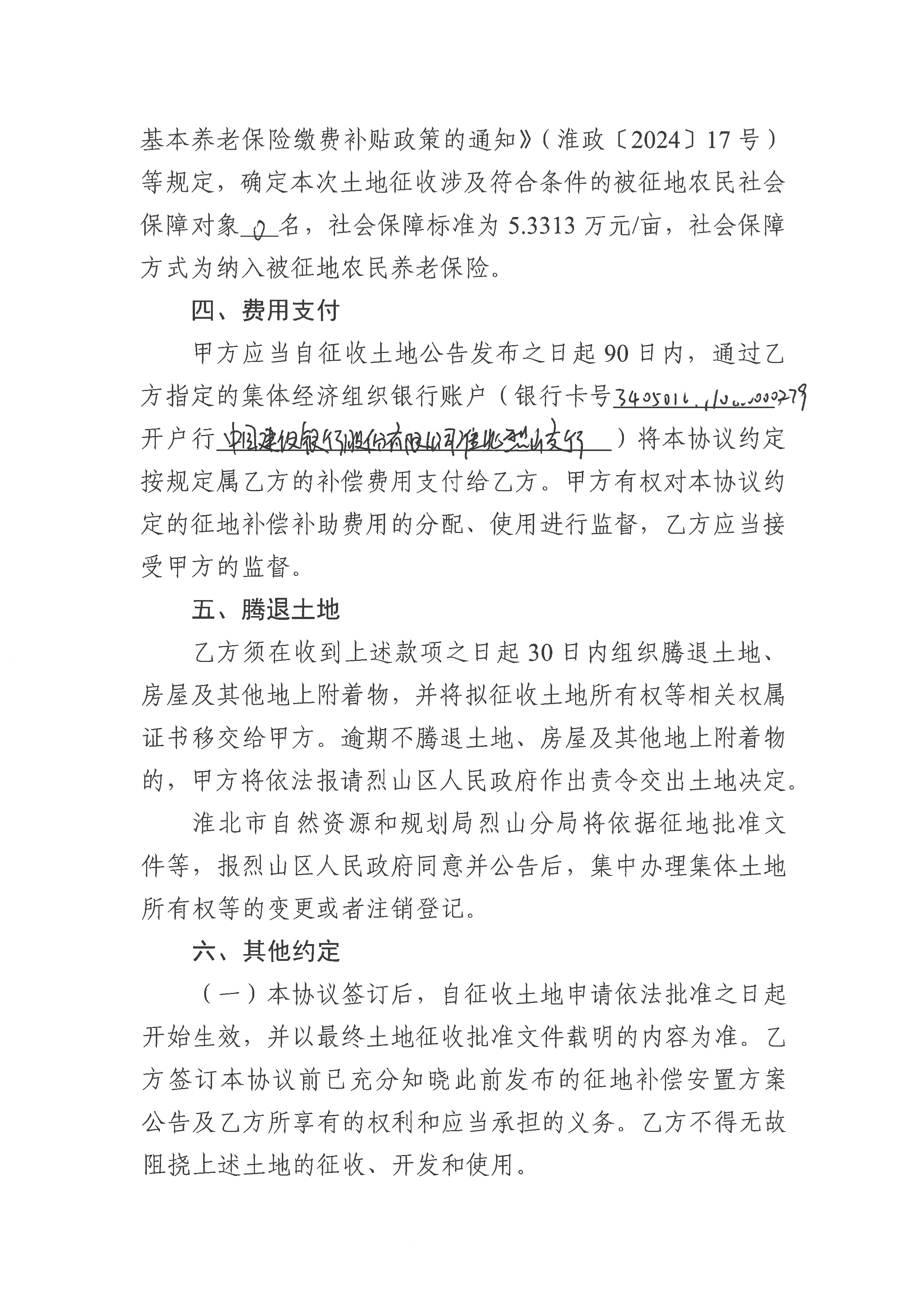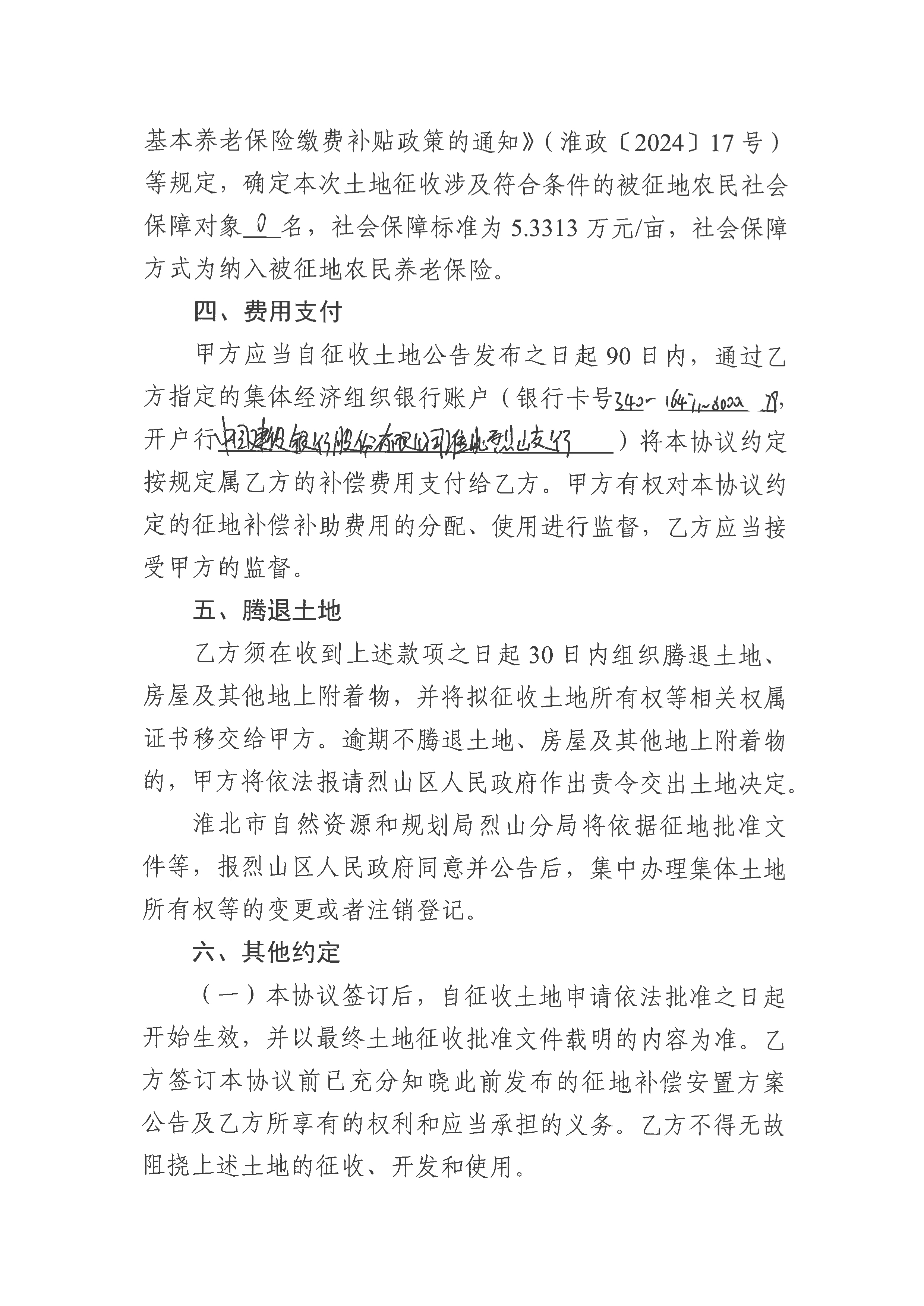 淮北市烈山区人民政府征地补偿安置协议(烈山区2025年第1批次城镇建设用地)