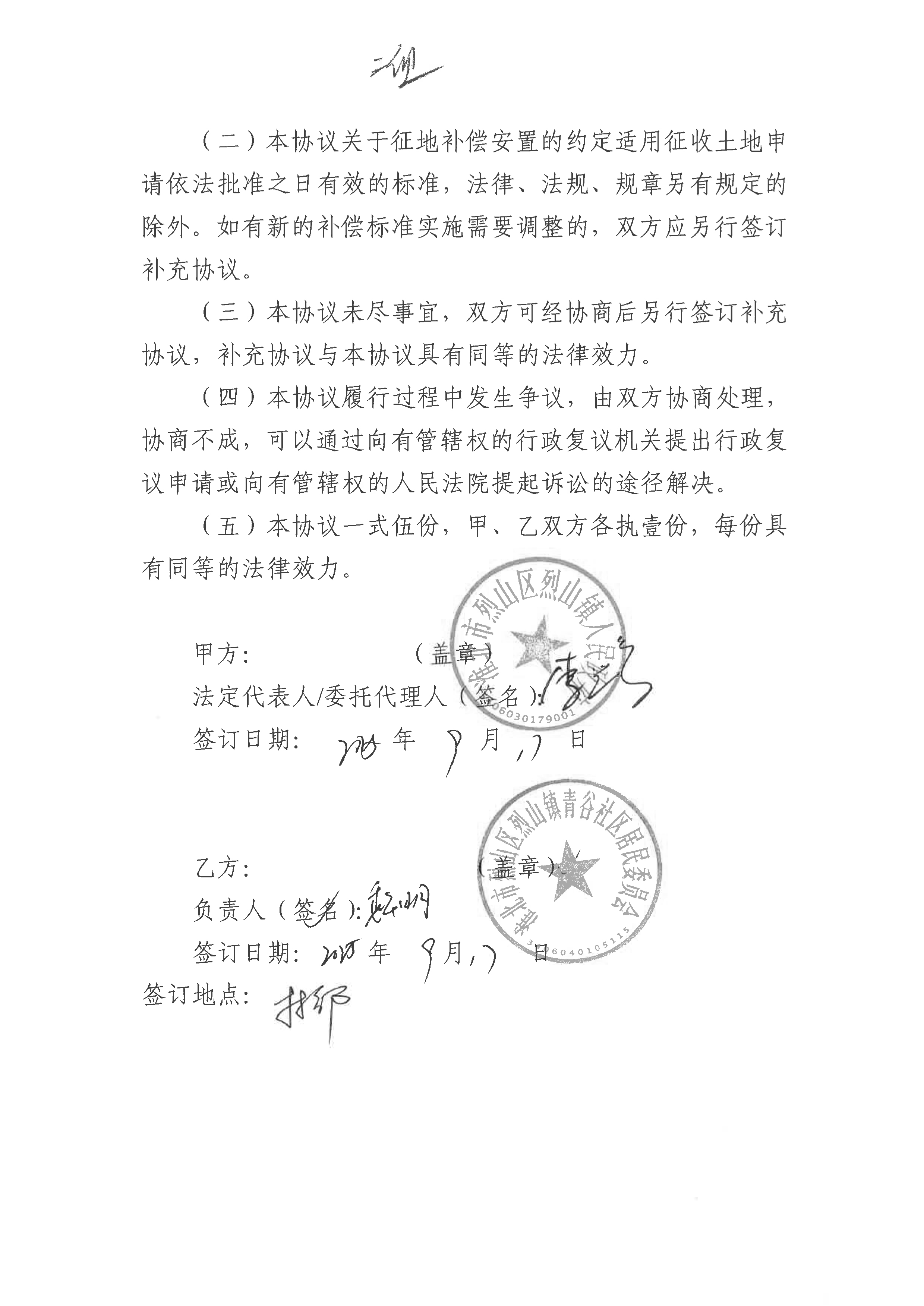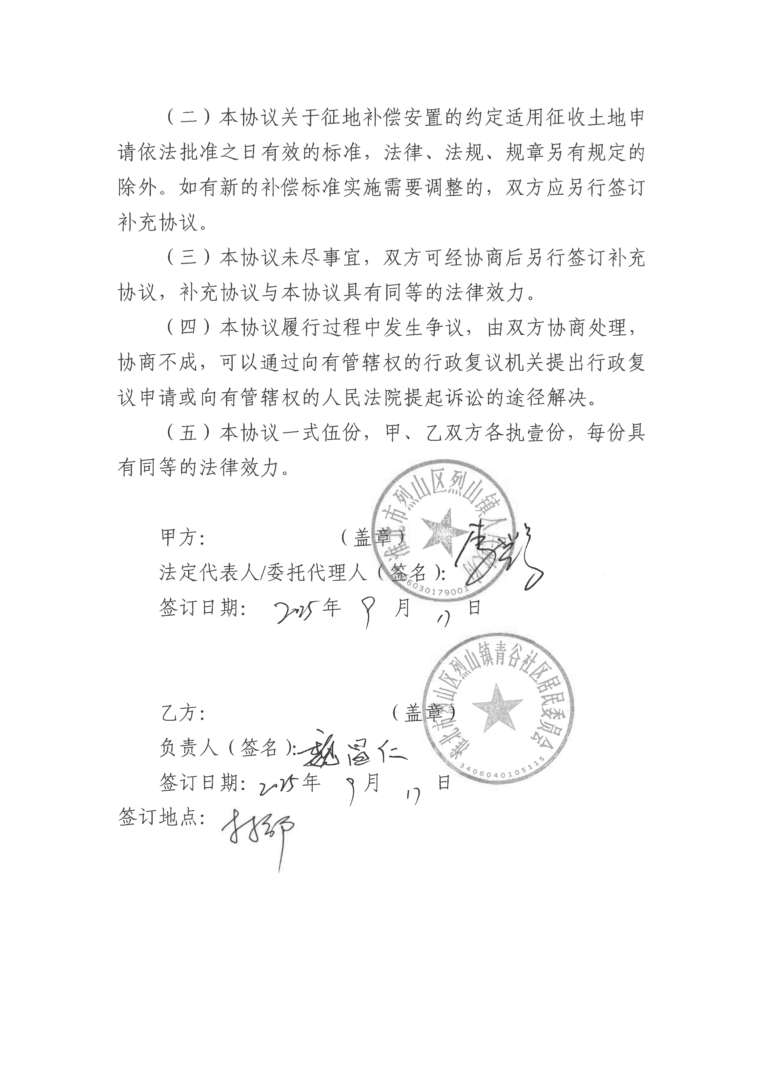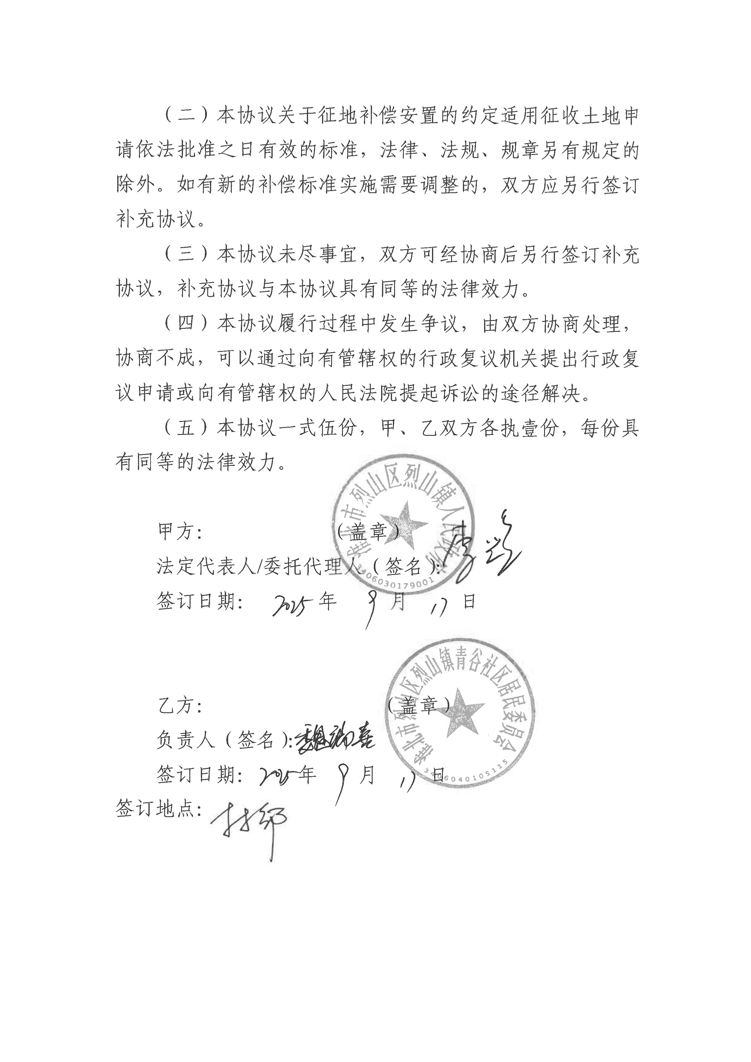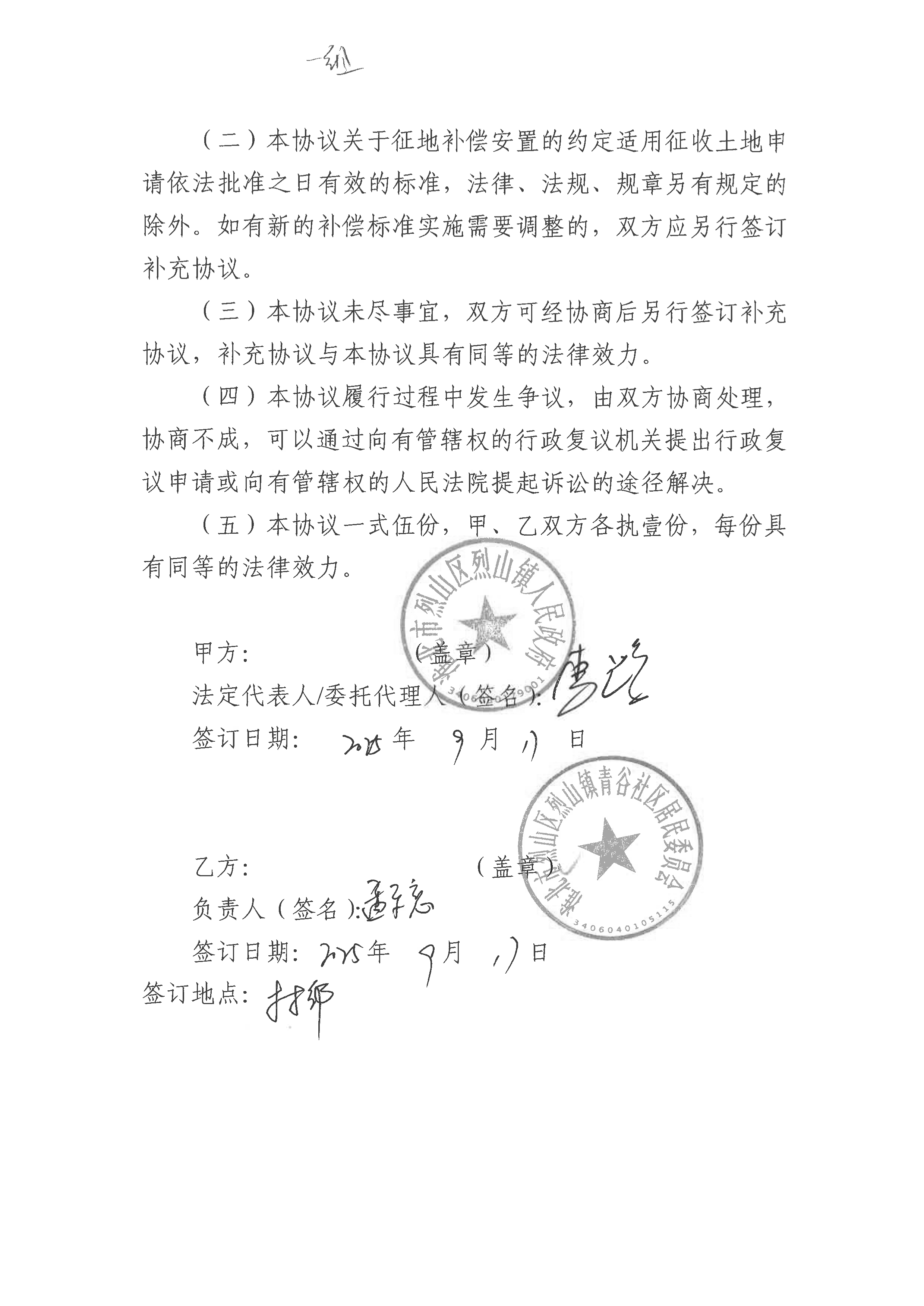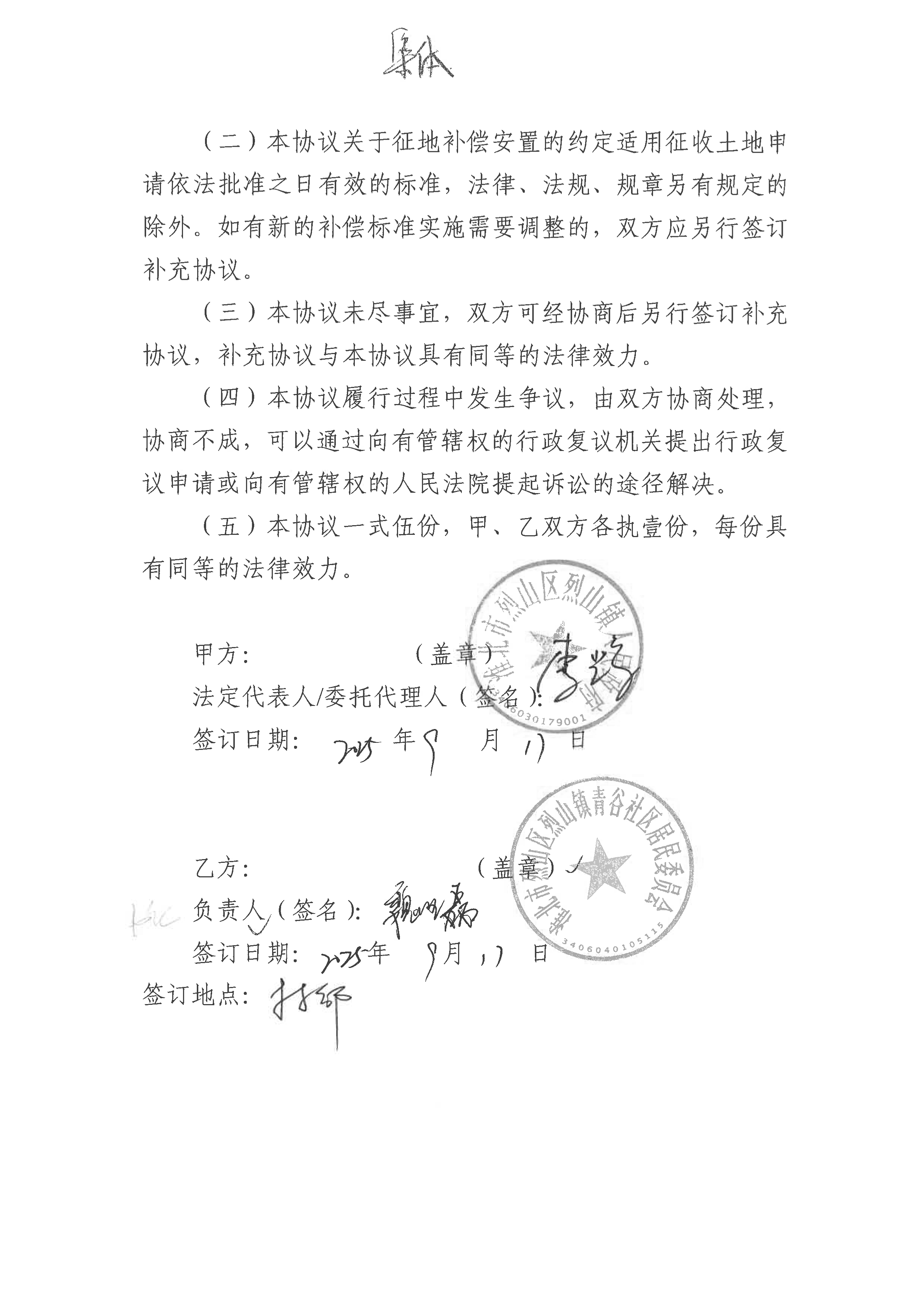 淮北市烈山区人民政府征地补偿安置协议(烈山区2025年第1批次城镇建设用地)