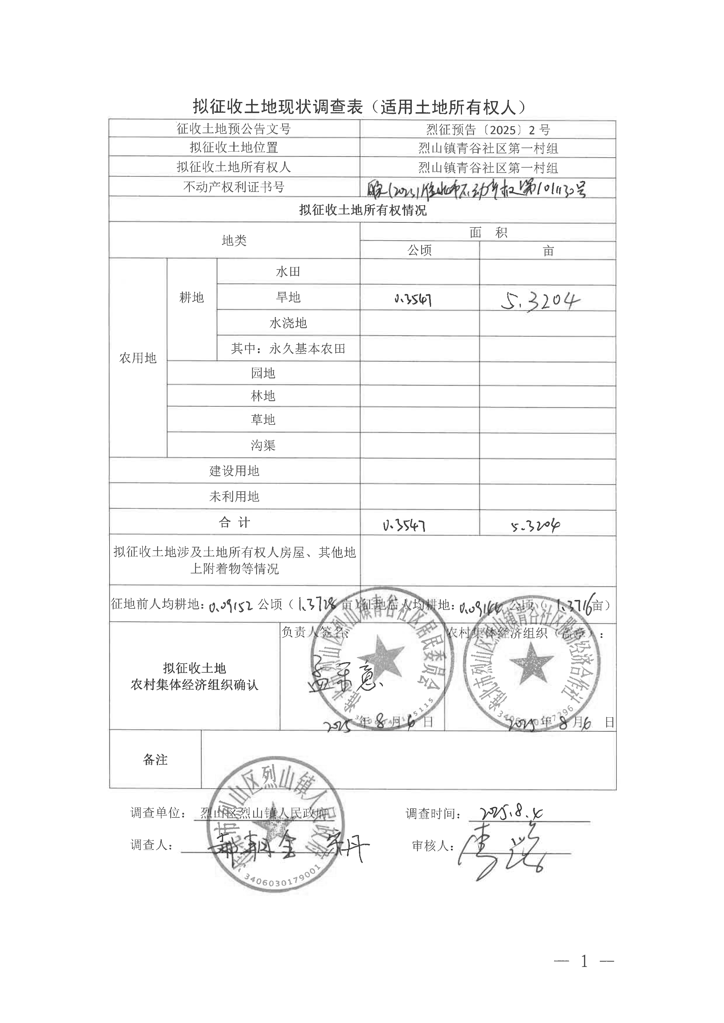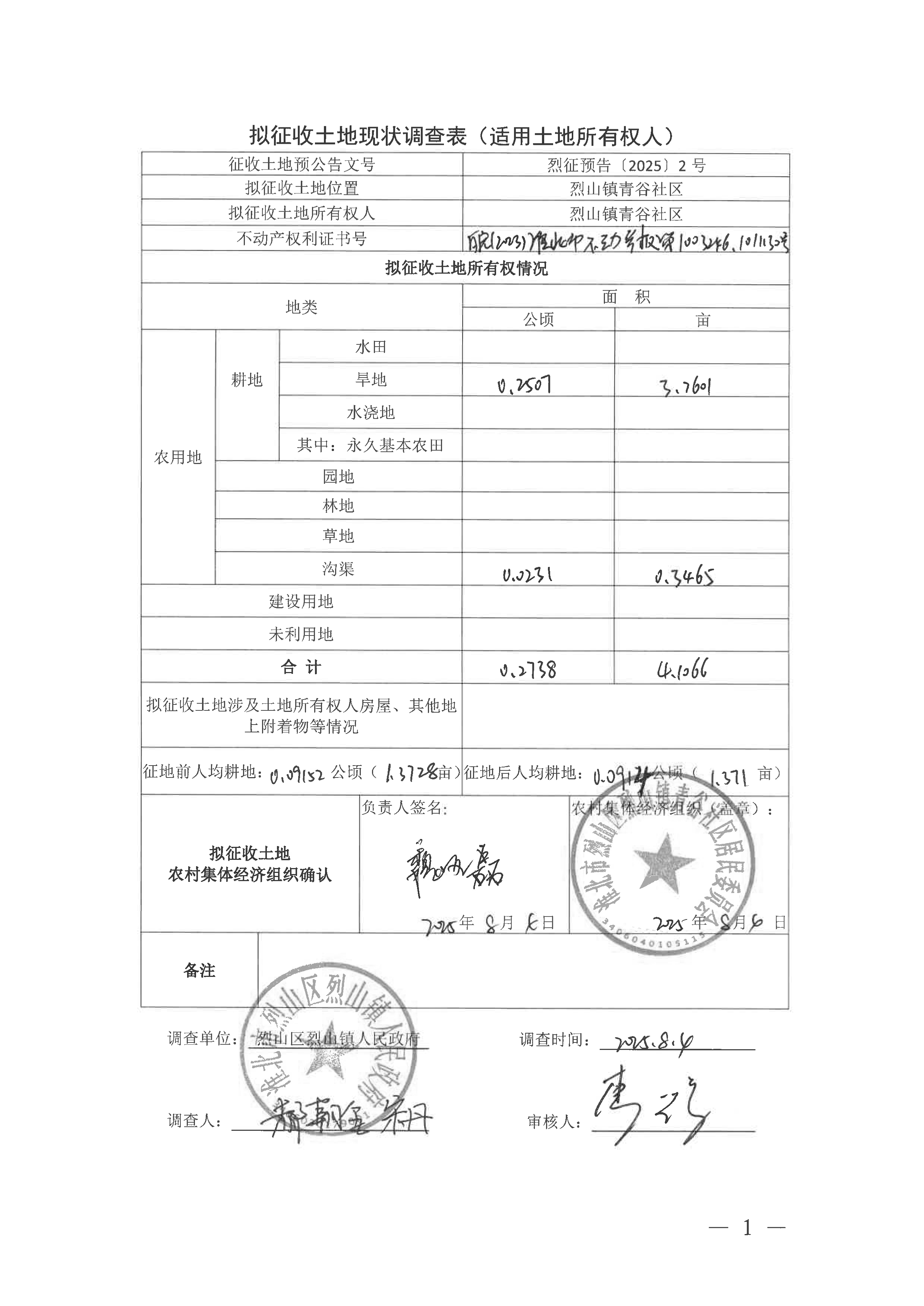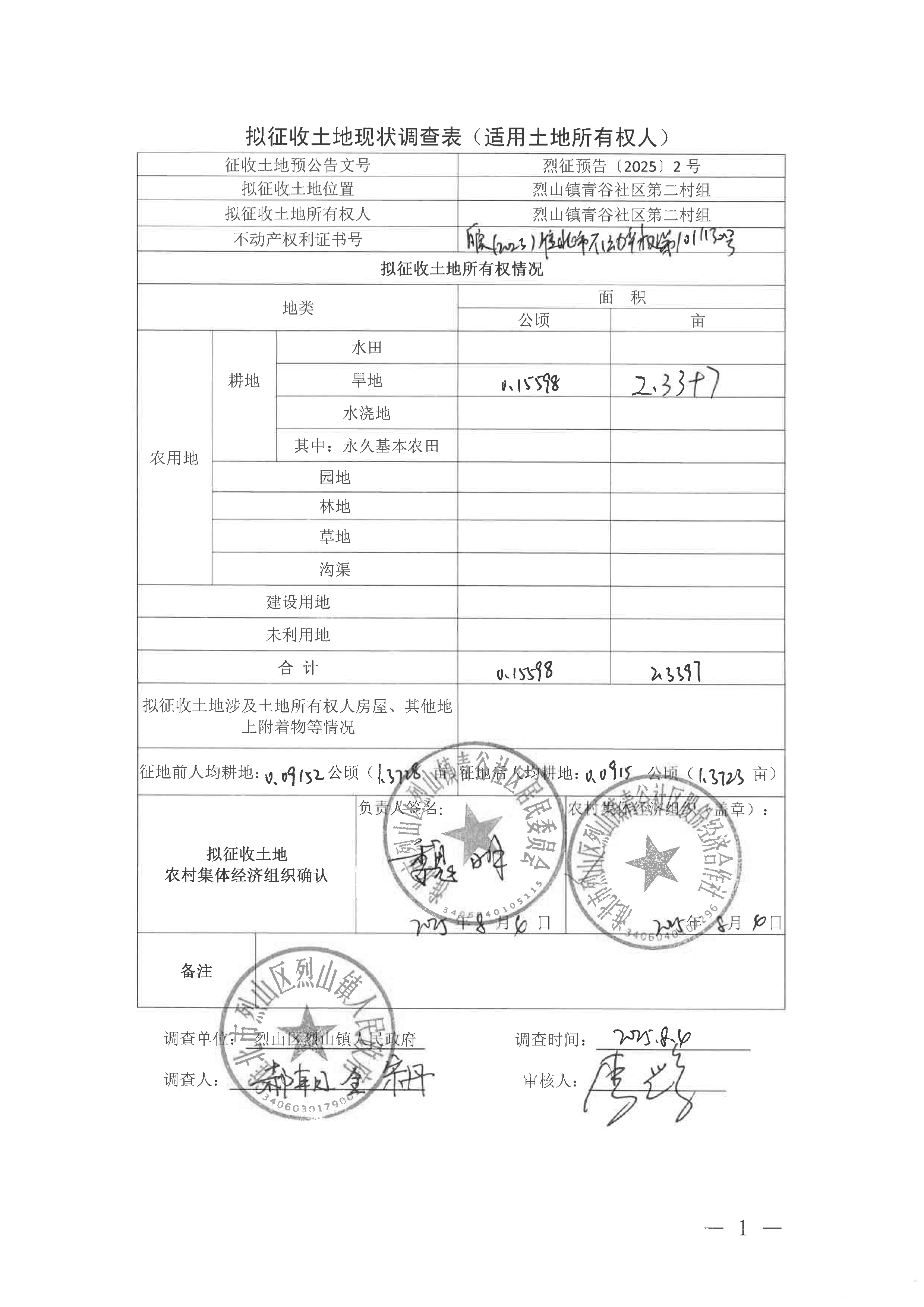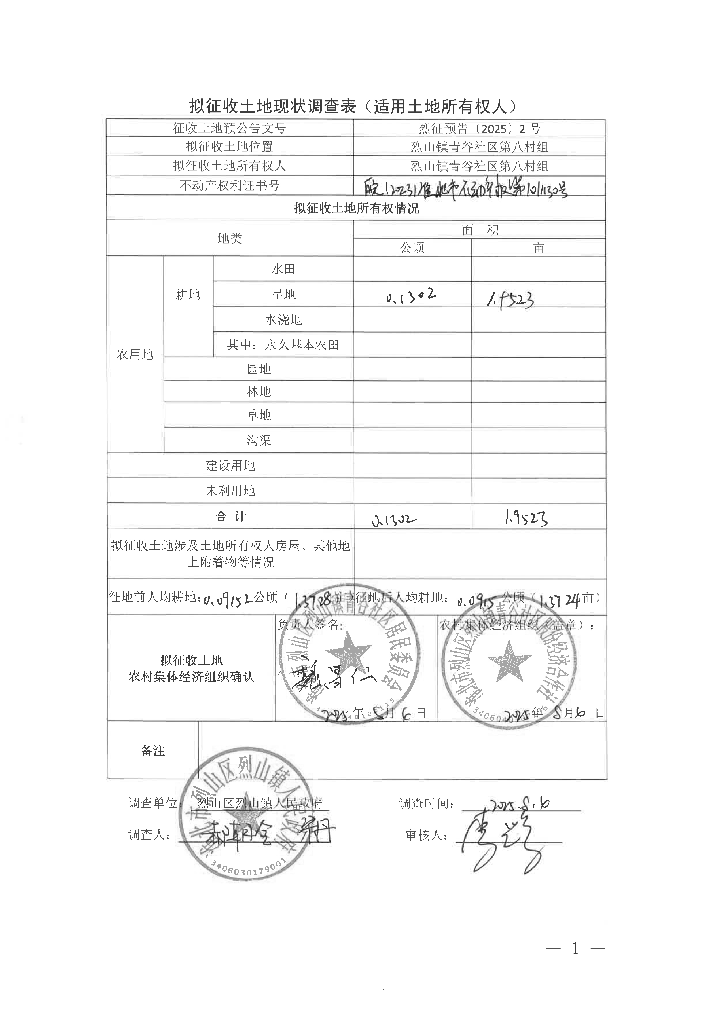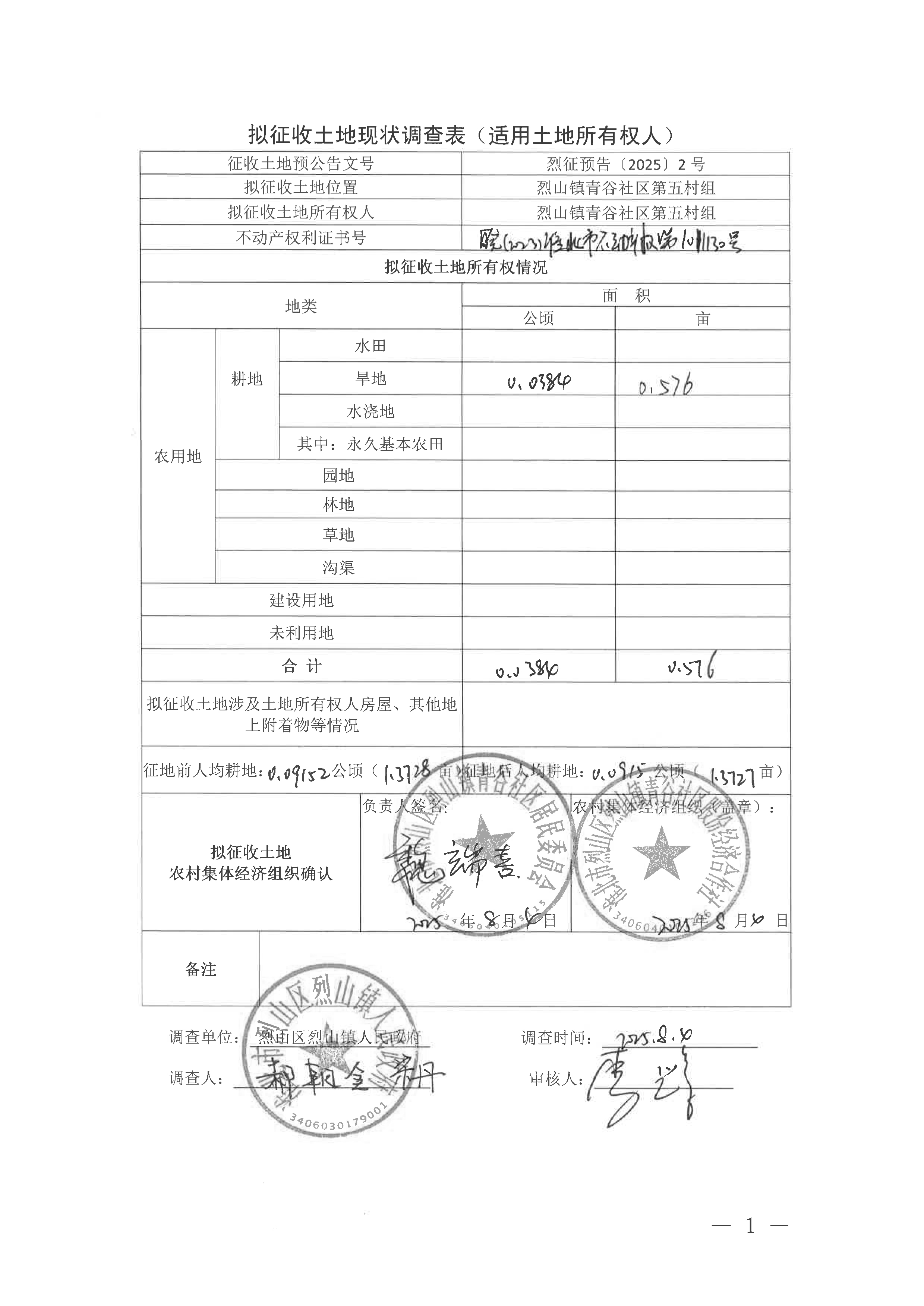 拟征收土地现状调查表(淮北市烈山区2025年第1批次城镇建设用地)