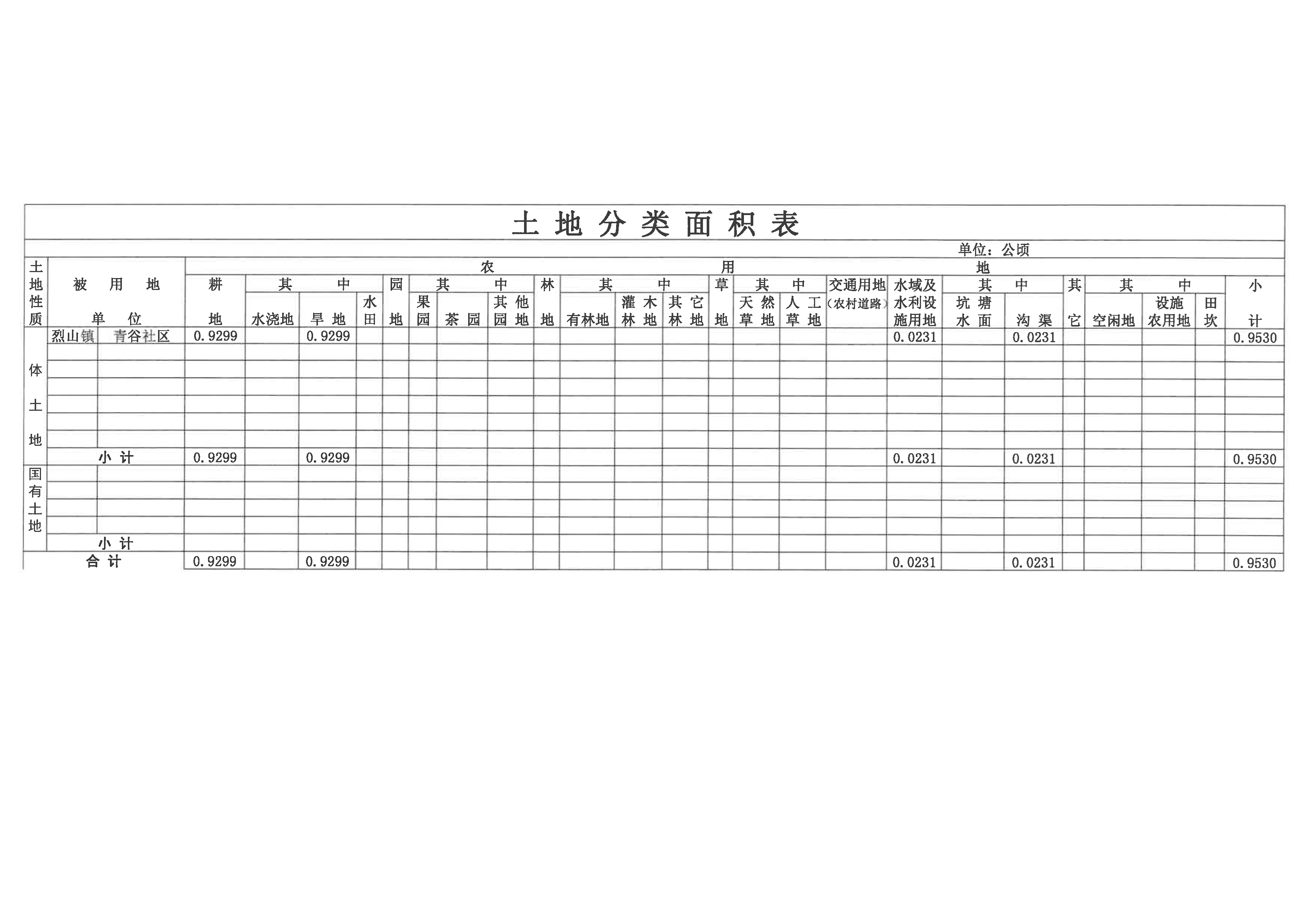 土地分类面积表(淮北市烈山区2025年第1批次城镇建设用地)