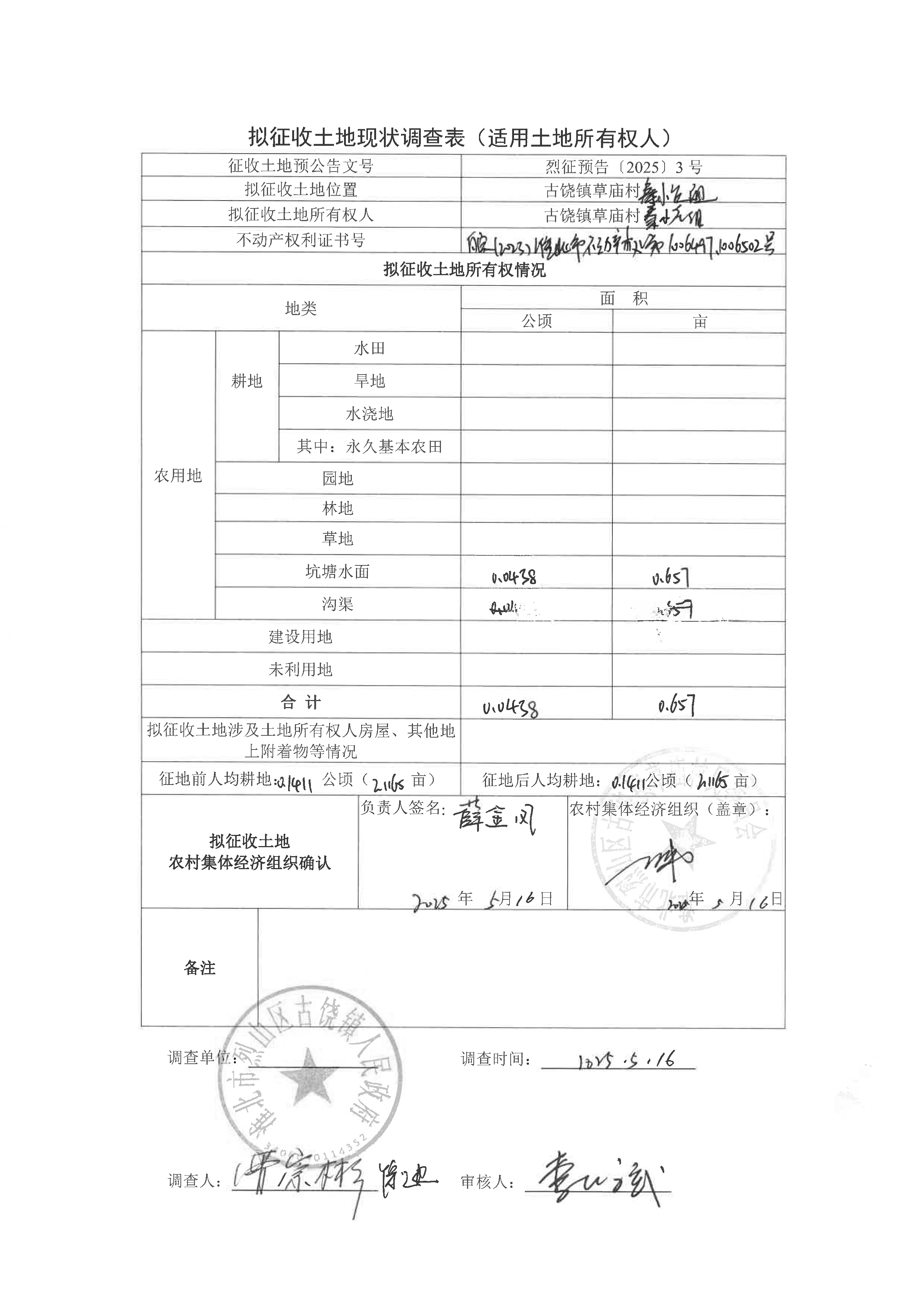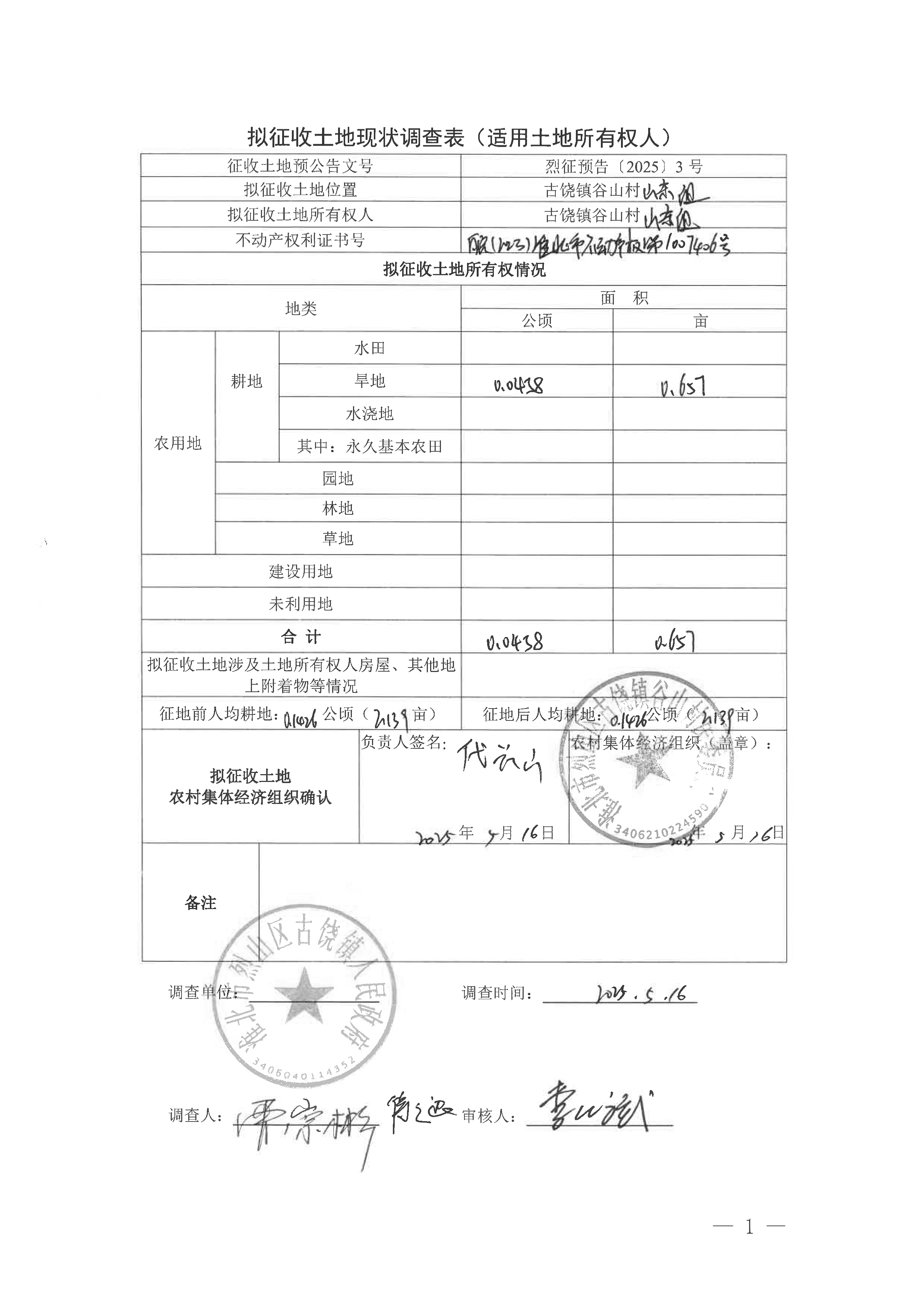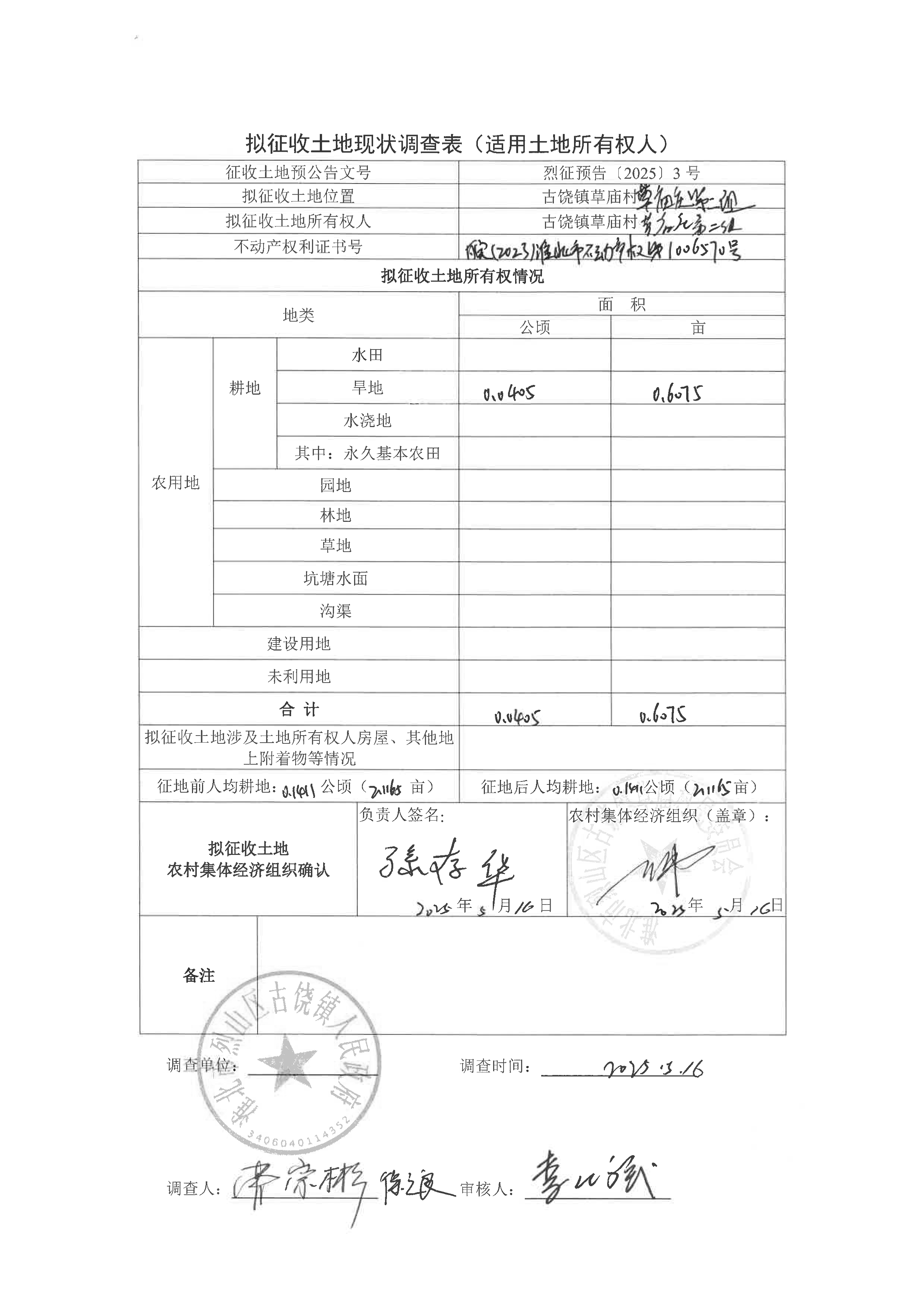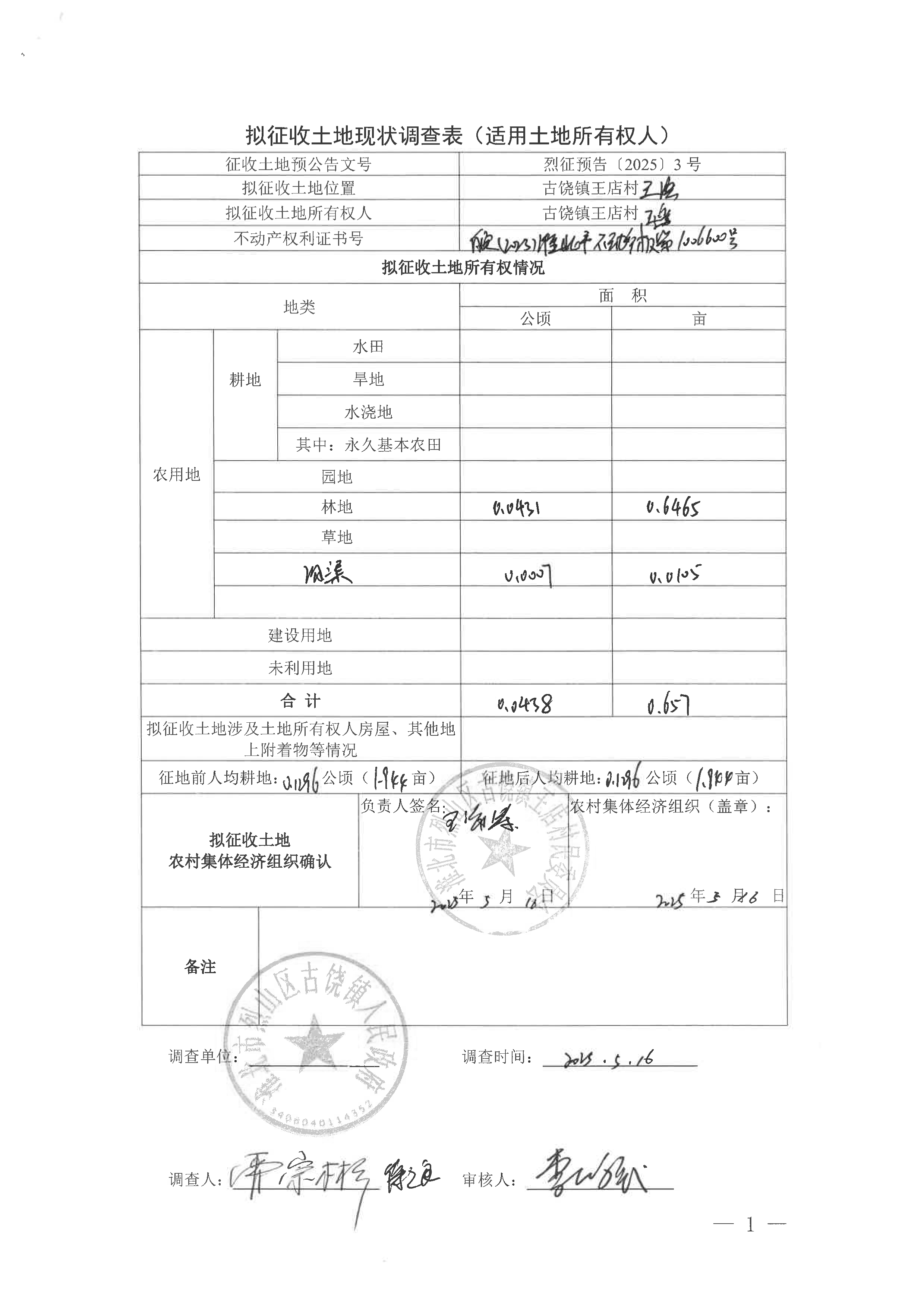 拟征收土地现状调查表(淮北烈山区古宋风电场项目)