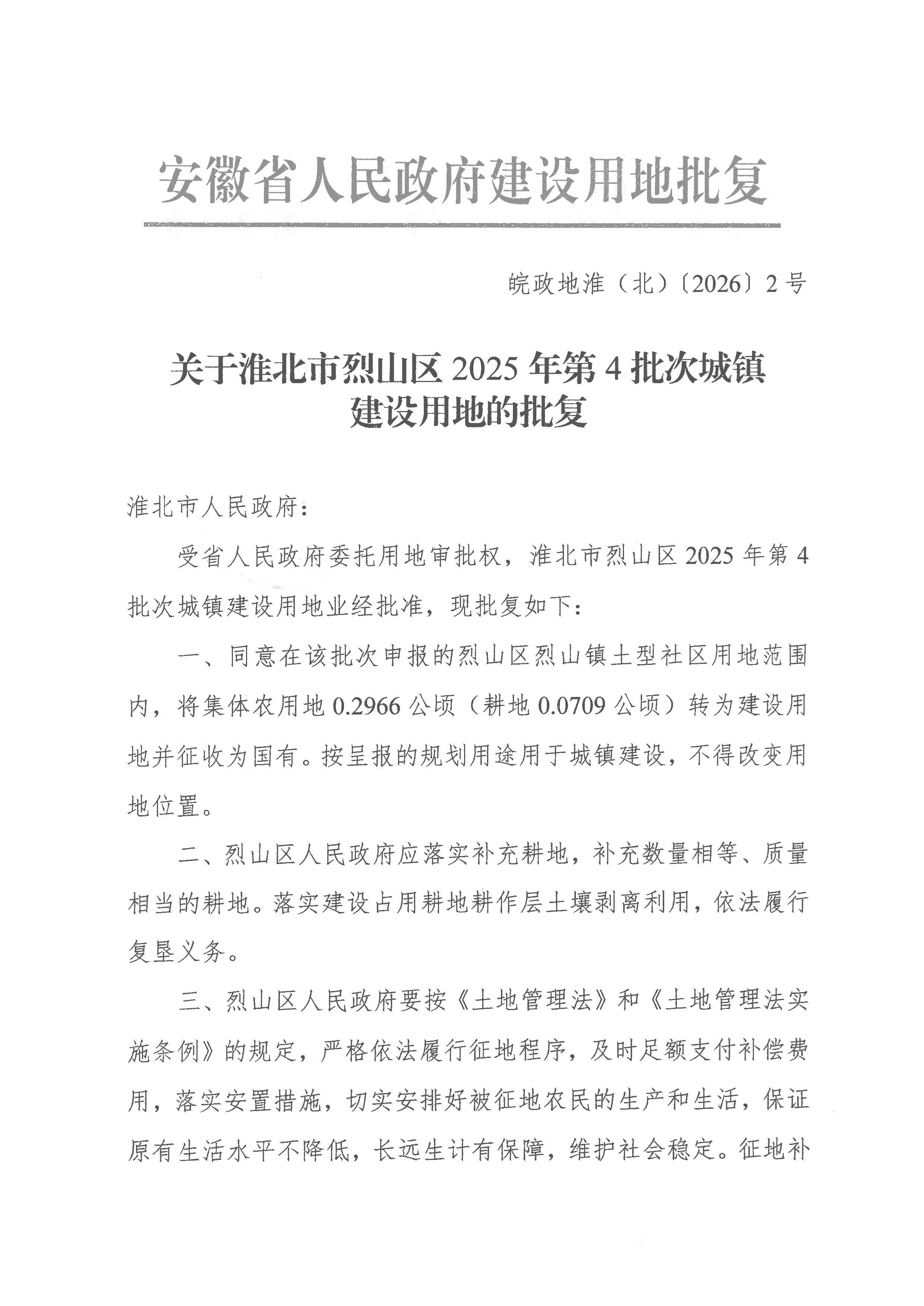 皖政地淮(北)〔2026〕2号 |