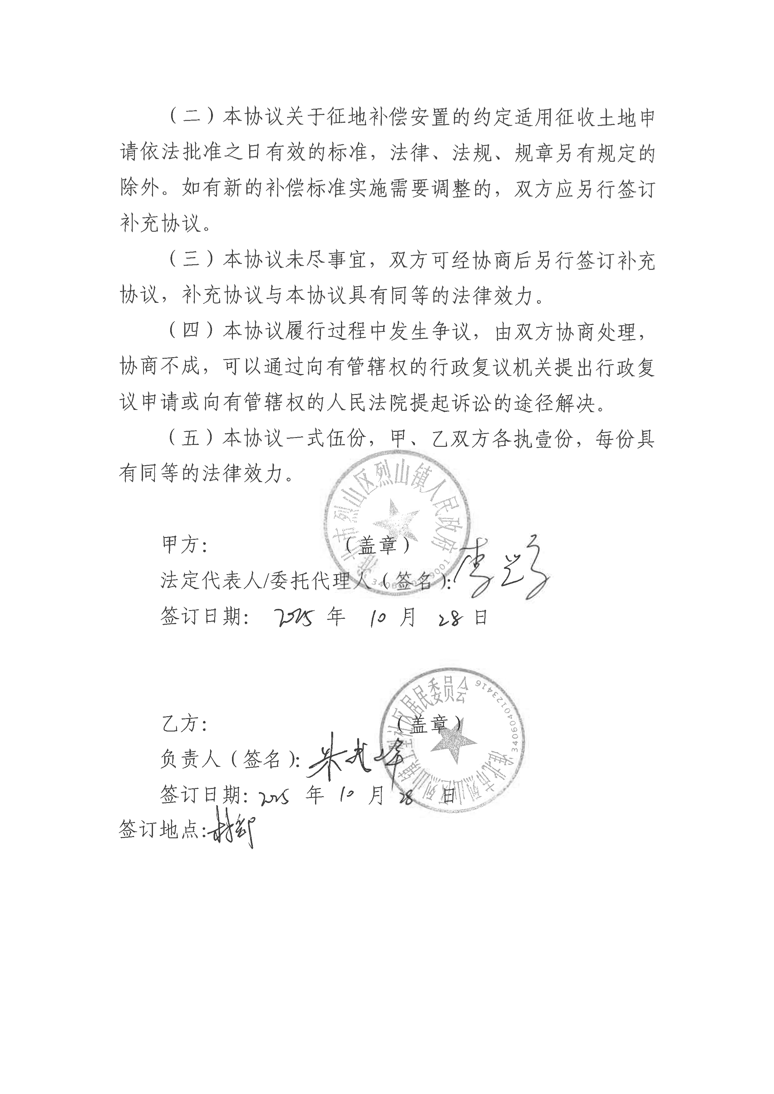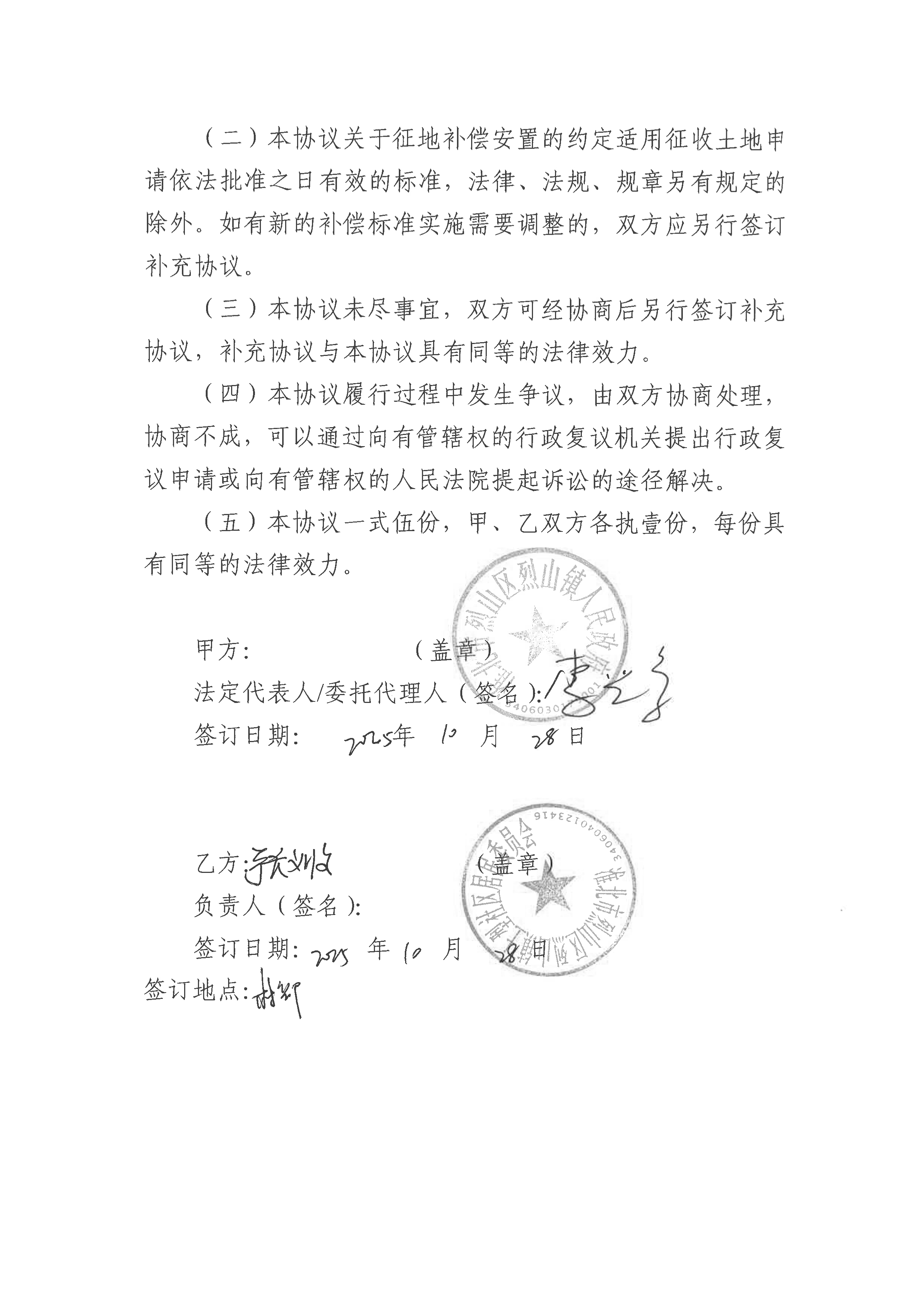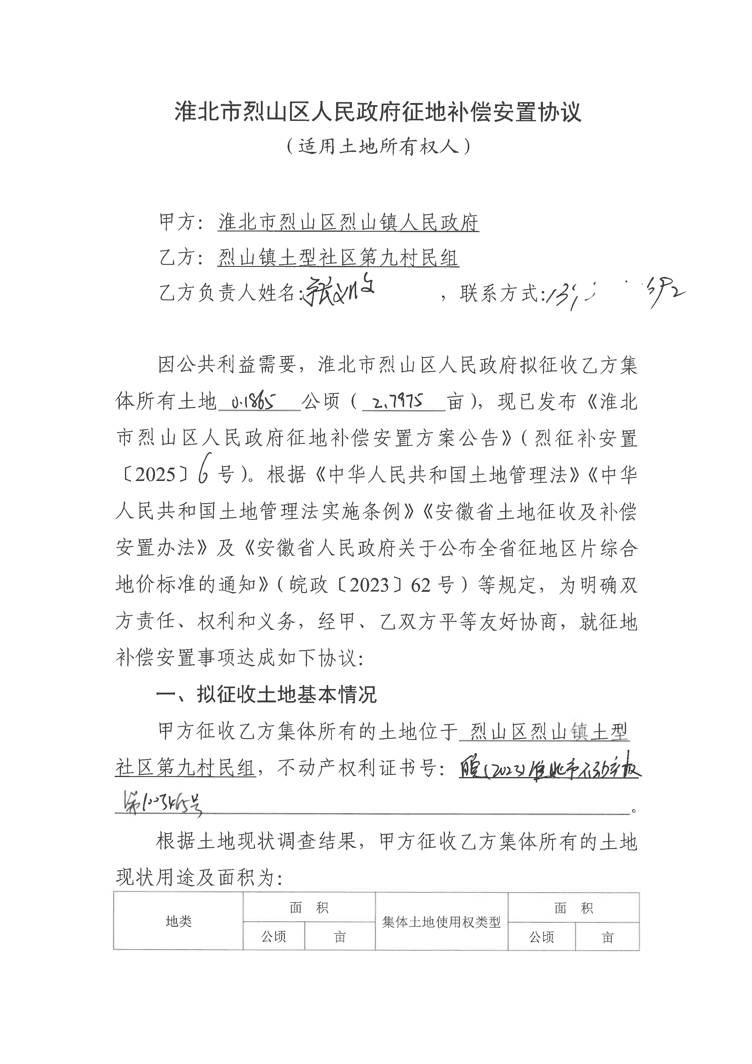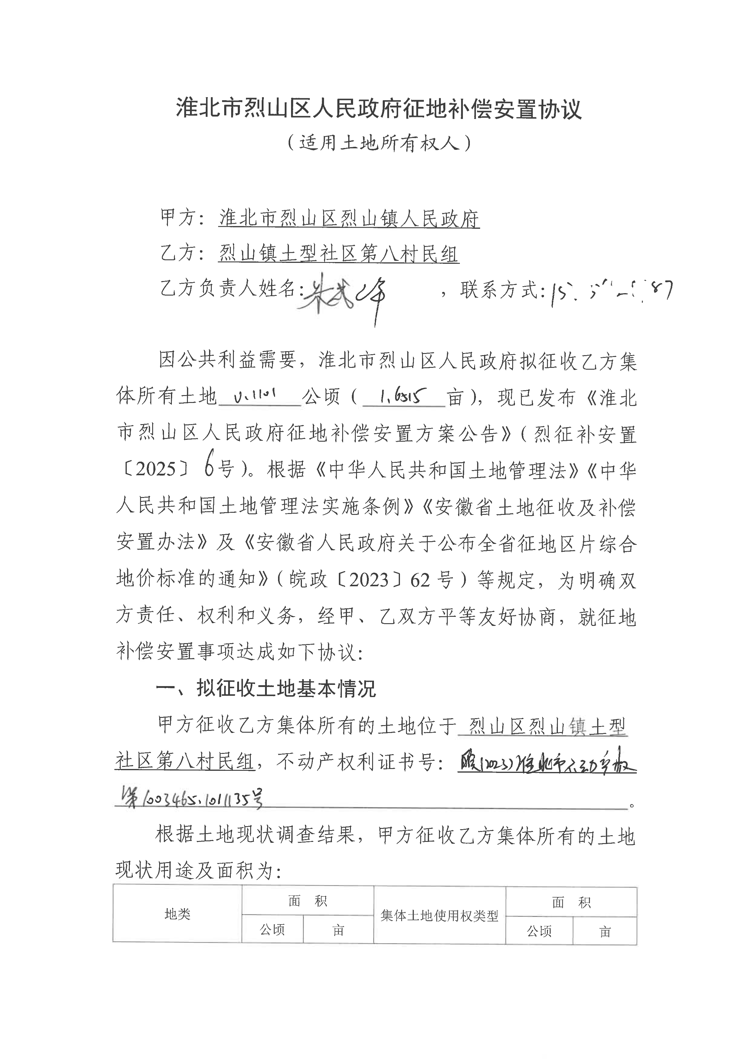 淮北市烈山区人民政府征地补偿安置协议(淮北烈山区2025年第4批次城镇建设用地)