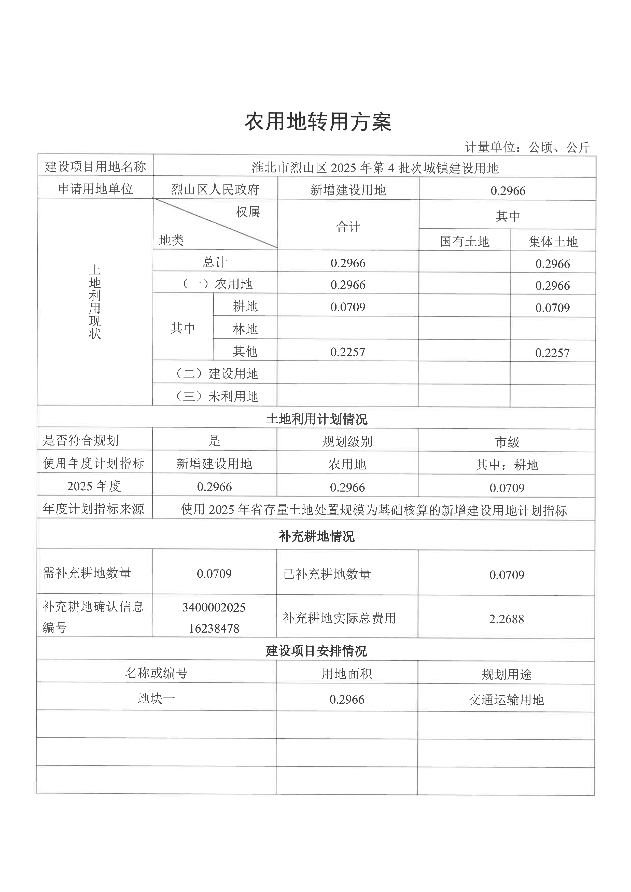 建设用地呈报农用地转用方案(淮北市烈山区2025年第4批次城镇建设用地)