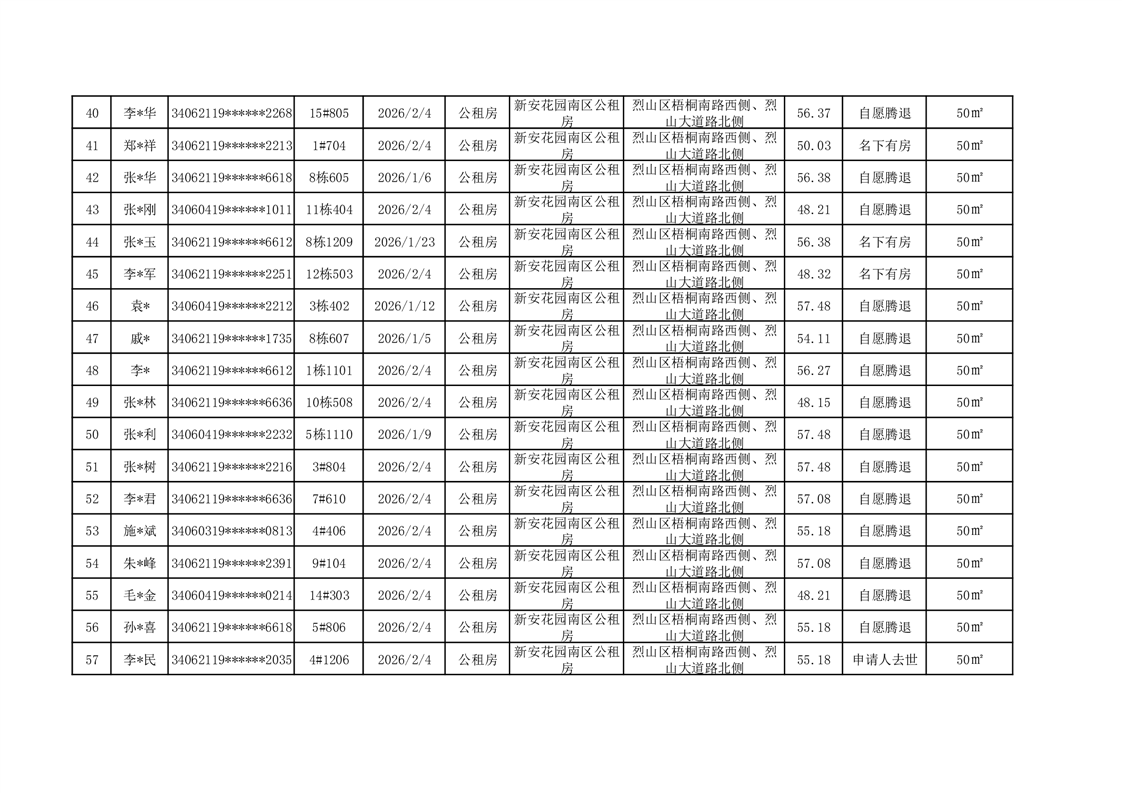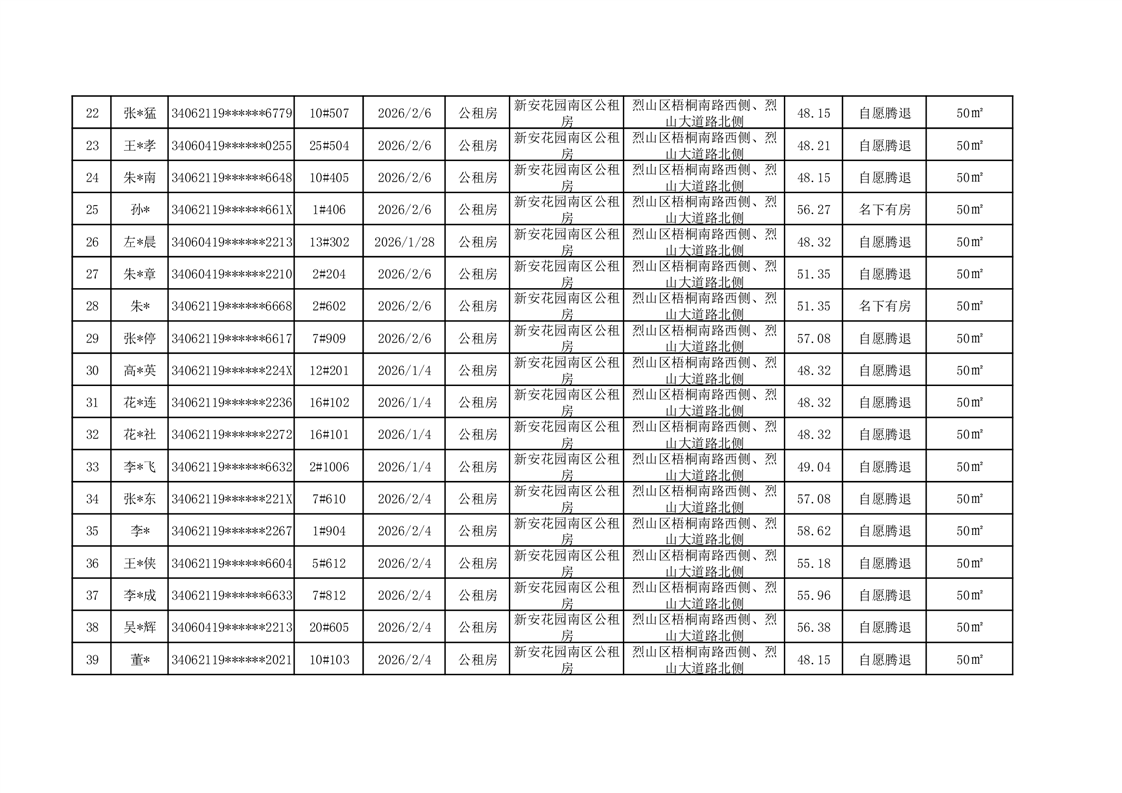 2026年烈山区公租房一季度到期退出情况